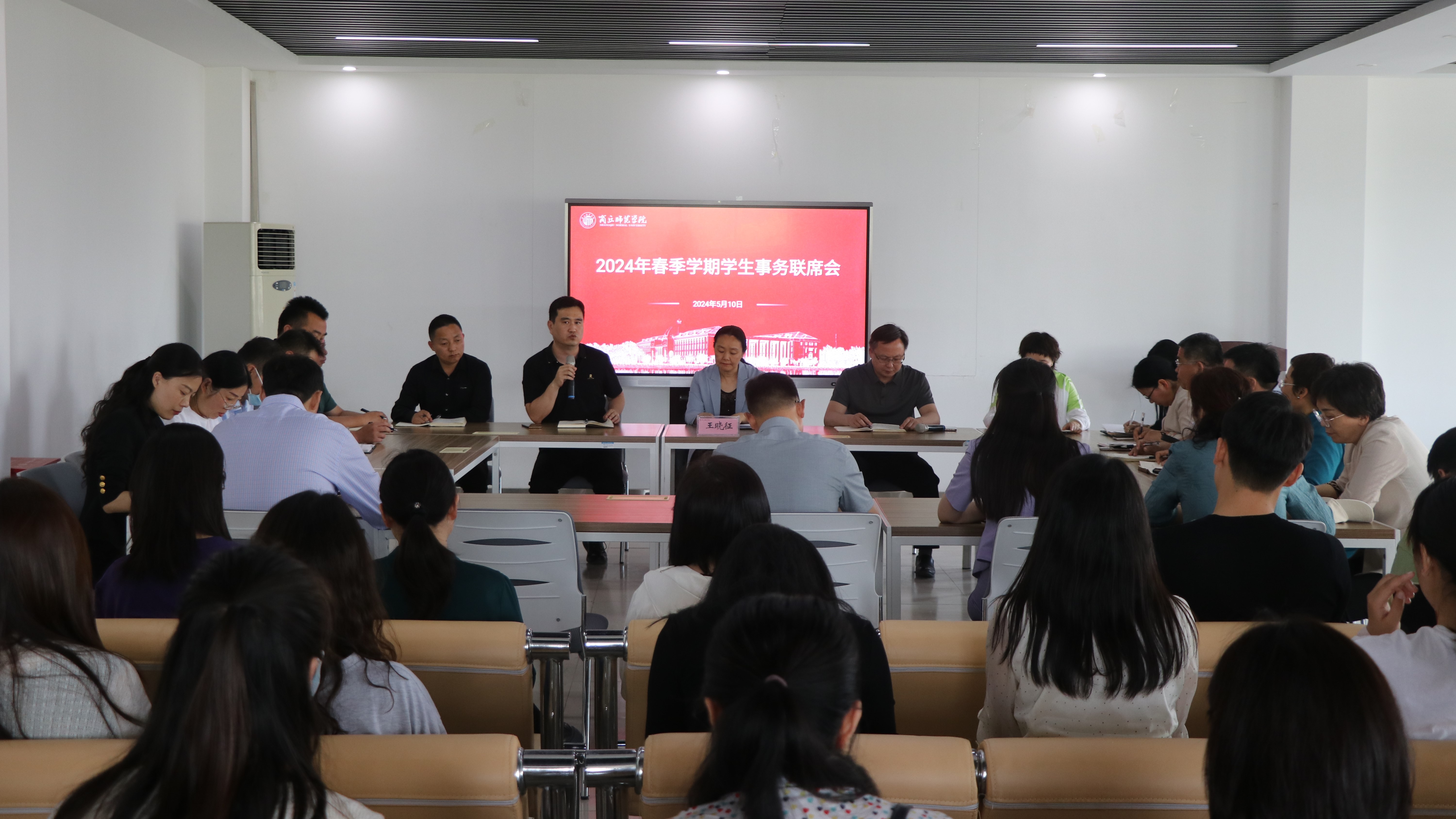 5月10日,纽约国际官网在梁园校区学生事务服务中心召开2024年春季学期学生事务联席会,副校长王晓征出席会议。