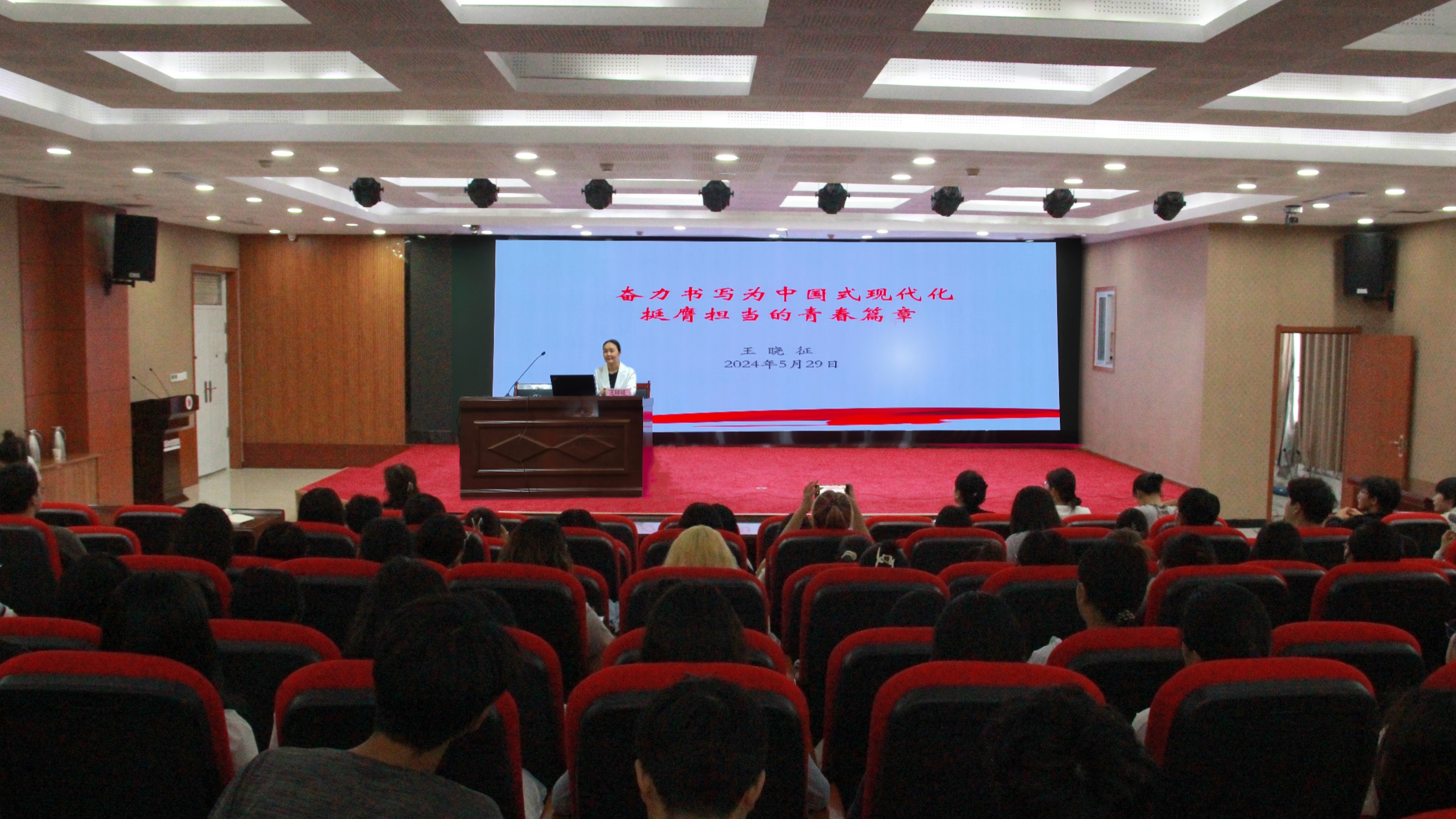 5月29日,副校长王晓征在三商楼145报告厅,以“奋力书写中国式现代化挺膺担当的青春篇章”为题,为测绘与规划学院学生讲授思政课。王晓征从“以青春之势拥抱时代、以青春之志树立远大理想、以青春之能担当时代重任、以青春之力练就过硬本领”四方面深入浅出地讲述了时代赋予青年大学生群体的责任与担当、使命与理想。她鼓励同学们要加强学习,提高综合素养;淬炼思想,塑造优秀品格;对标榜样,汲取奋进力量;心向阳光,涵养积极心态,五育并举,全面发展,争做有理想、敢担当、能吃苦、肯奋斗的时代新人,为实现中国式现代化和中华民族的伟大复兴贡献青春力量。