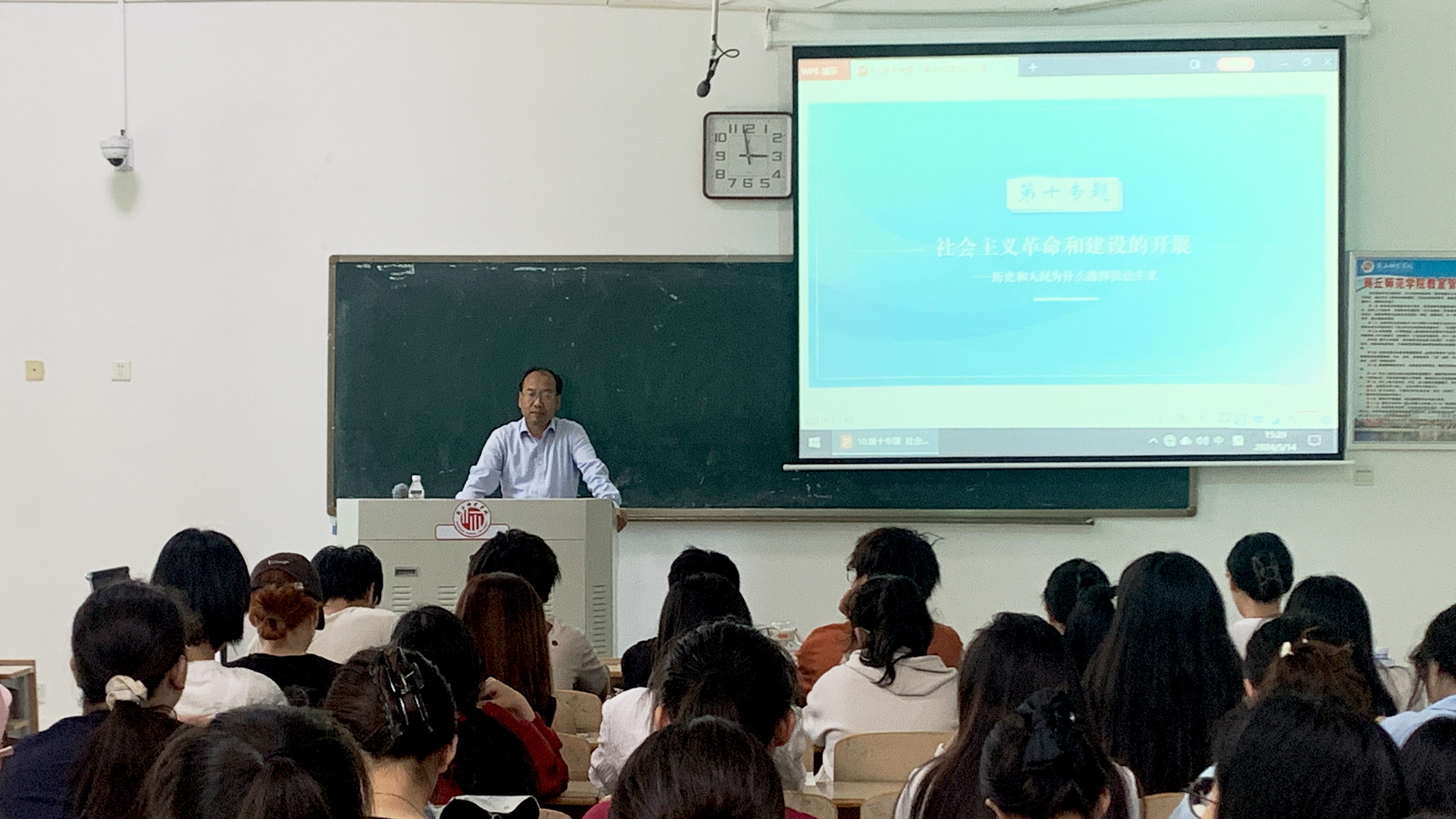 5月14日,副校长郭文佳在行方楼123教室,以“社会主义革命和建设的开展——历史和人民为什么选择社会主义”为题,为2023级网络与新媒体、法学自选20班学生讲授了思政课。郭文佳主要围绕新生人民政权是如何巩固的、新中国是如何走上社会主义道路的、中国社会主义建设道路经历了怎样的艰辛探索、全面建设社会主义时期取得了怎样的历史性成就四个方面进行阐述。分析了社会主义之所以成为历史和人民的必然选择,中国共产党的领导是关键,党在社会主义革命和建设中取得的独创性理论成果和巨大成就,为新的历史时期开创中国特色社会主义提供了宝贵经验、理论准备和物质基础。