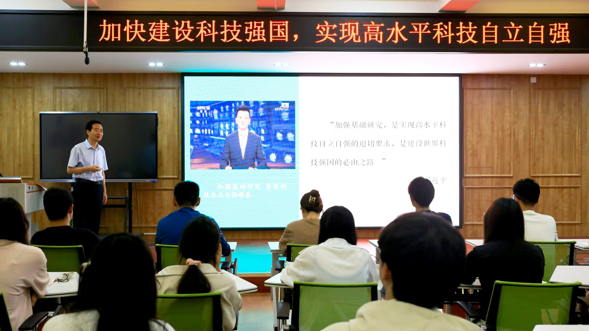 5月20日和5月22日,校长陈向炜分别在梁园校区行方楼234教室和智圆楼104教室,以《加快建设科技强国,实现高水平科技自立自强》为题,为法学院2023级学生和外语学院学生讲授专题形势与政策课。课程围绕学深悟透习近平总书记“科技自立自强是国家强盛之基、安全之要”重要讲话精神,结合新时代我国在载人航天、探月工程、量子通信等领域取得重大科技成果的鲜活事例,深刻剖析加快实现高水平科技自立自强的重要意义,从科技自立自强的内涵、特征、实施路径以及青年学子的责任担当等方面进行系统阐述。陈向炜指出,青年学子要心怀“国之大者”,主动融入国家“发展蓝图”,坚定信心,以真才实学立身、以创新创造奉献;要不负青春、不负韶华,以时不我待的紧迫感,在潜心学习中夯实专业基础,在勇于创新中练就过硬本领;要勇于攻坚克难,展现“敢为天下先”的创新追求,以顽强作风汇聚推动“科技强国”的强大力量,共同书写新时代青年的奋进篇章。