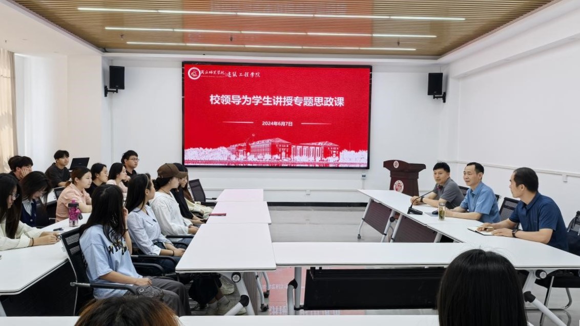 6月7日,副校长张箭在睢阳校区工科实训中心三楼会议室,以《全面推进美丽中国建设,加快推进人与自然和谐共生的现代化》为题,为建筑工程学院学生讲授思政课。从美丽中国建设的总体要求和重大意义出发,阐述什么是美丽中国、建设什么样的美丽中国、怎样建设美丽中国等重大理论和实践问题,进一步讲解美丽中国的内涵特征、目标要求和建设路径。他要求,要提高环保意识、开拓全球视野、增强责任担当,坚决扛起美丽中国建设的历史使命,牢固树立和践行绿水青山就是金山银山的理念,把建设美丽中国摆在强国建设、民族复兴的突出位置,以高品质生态环境支撑高质量发展,加快推进人与自然和谐共生的现代化。