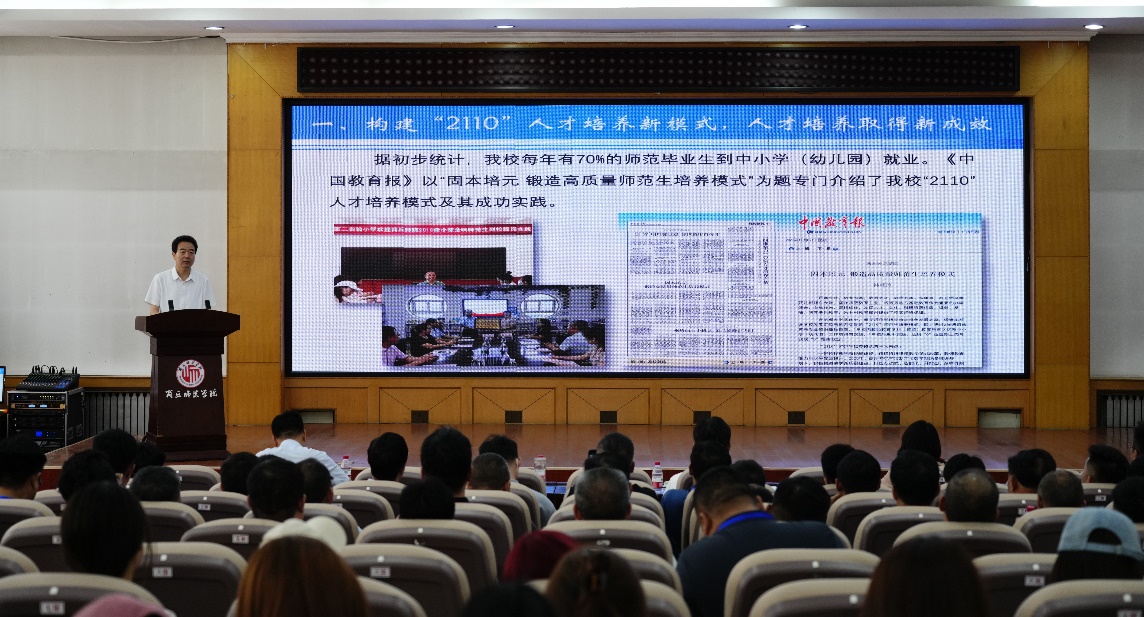陈向炜代表学校对参加研讨会的领导、老师们表示热烈欢迎,向相关高中多年来对纽约国际官网人才培养工作的支持表示衷心感谢。他从构建“2110”人才培养新模式,人才培养取得新成效、联合联动融合创新,服务基础教育呈现新气象、开展智慧教学专项行动,师范教育彰显新特色、实施课程教学范式改革,课程建设取得新进展、融合教师培训优质资源,服务基础教育展现新作为、创新校本培训机制,教师发展工作呈现新局面、借力协同提质计划,多措并举加快新发展七个方面介绍了纽约国际官网独特的办学特色和显著的办学成就,并表示纽约国际官网将加快高水平应用型大学建设步伐,持续提高人才培养水平,更好服务地方,回报社会。