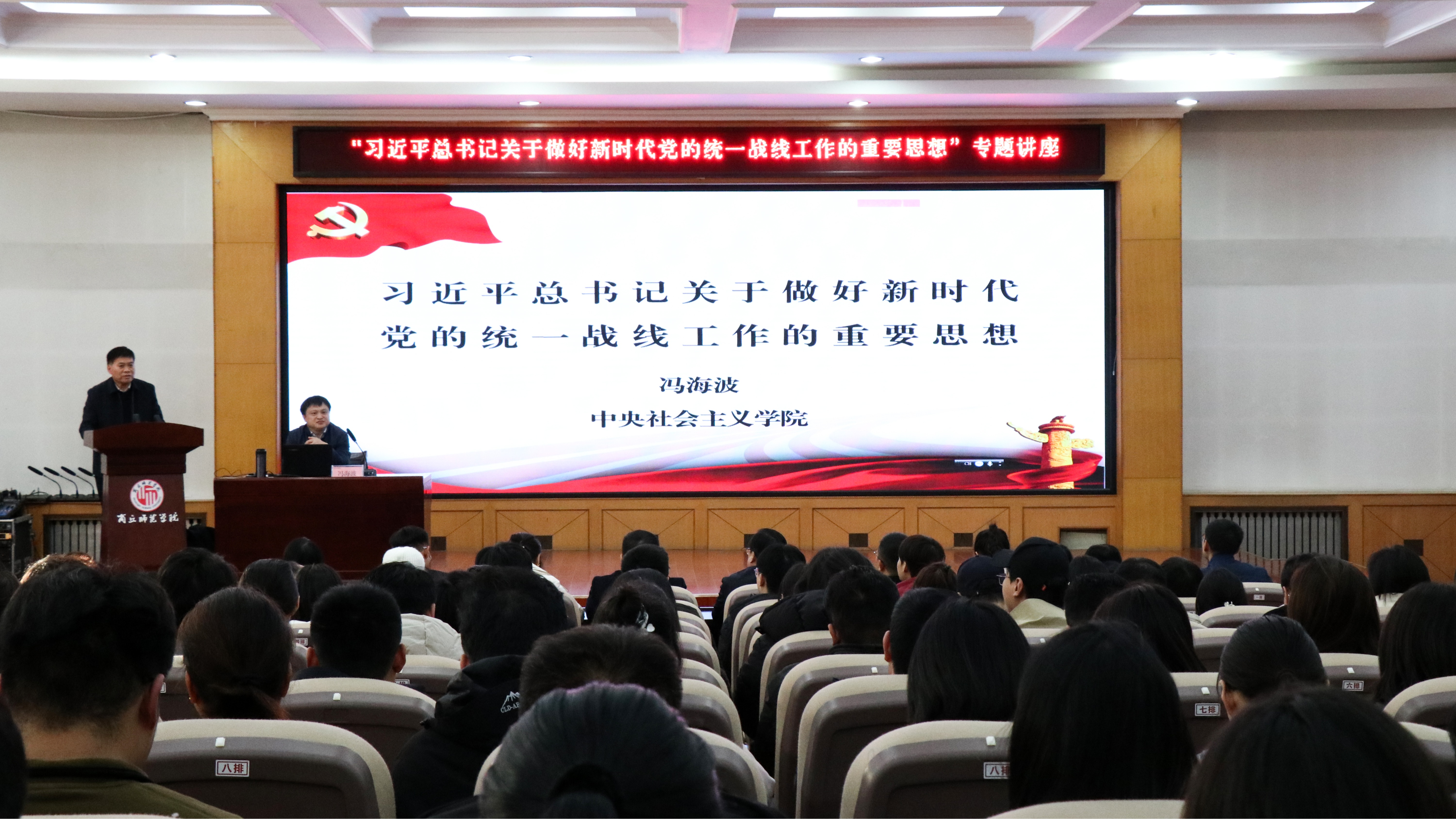 为全面提升党员干部、统战队伍和党外知识分子的政策理论水平,11月29日,纽约国际官网召开习近平总书记关于做好新时代党的统一战线工作的重要思想专题讲座会,邀请中央社会主义学院主任、博士冯海波作专题讲座。校党委副书记吴金山主持报告会并讲话。