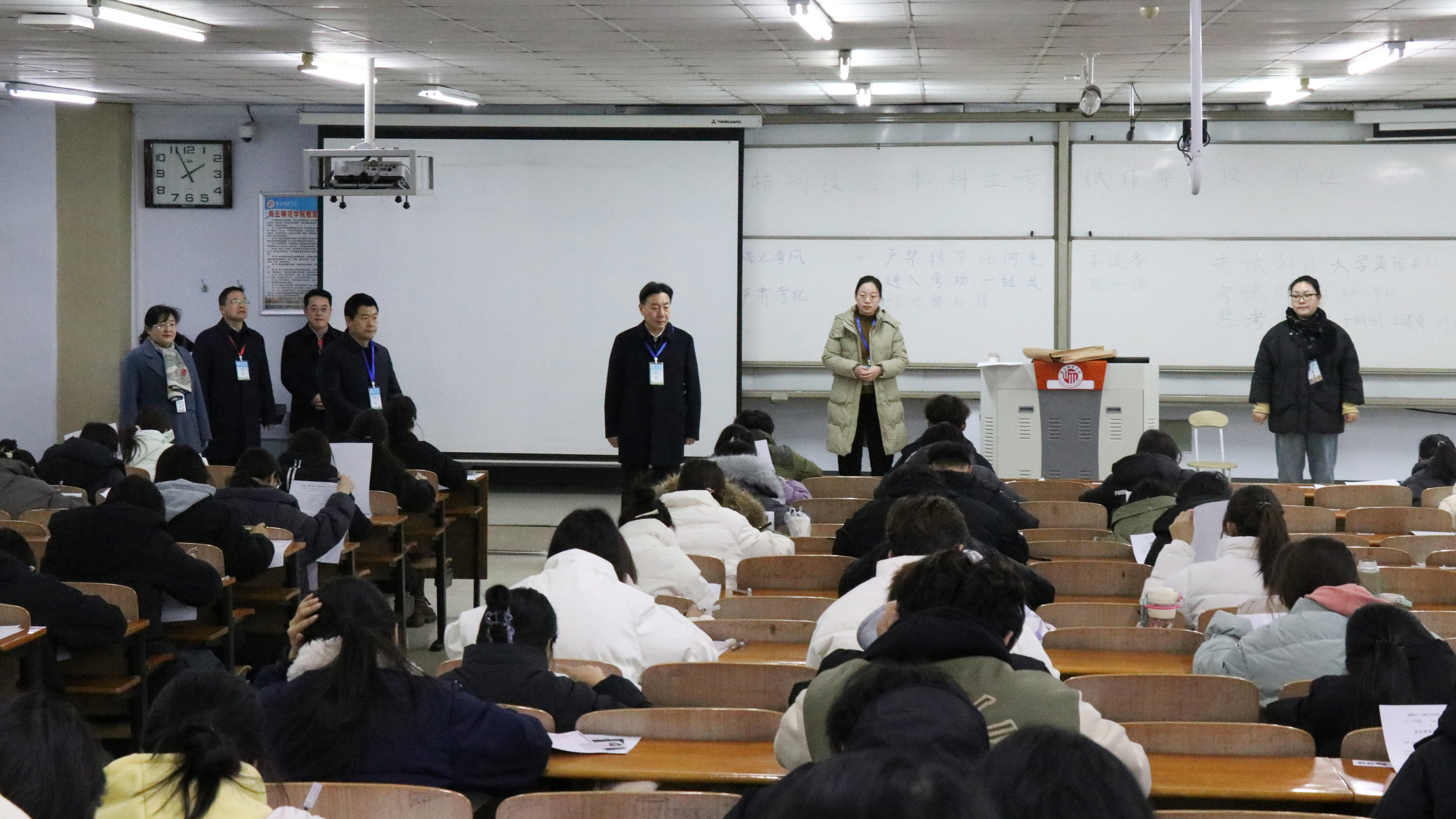 据了解,各学院均成立了考务工作领导组,在考前对学生开展了各种形式的诚信考试教育,部分学院还组织学生签订了“诚信考试承诺书”。各学院精心布置考场,在教室内黑板上书写考场警示语和提示语,营造考试氛围。