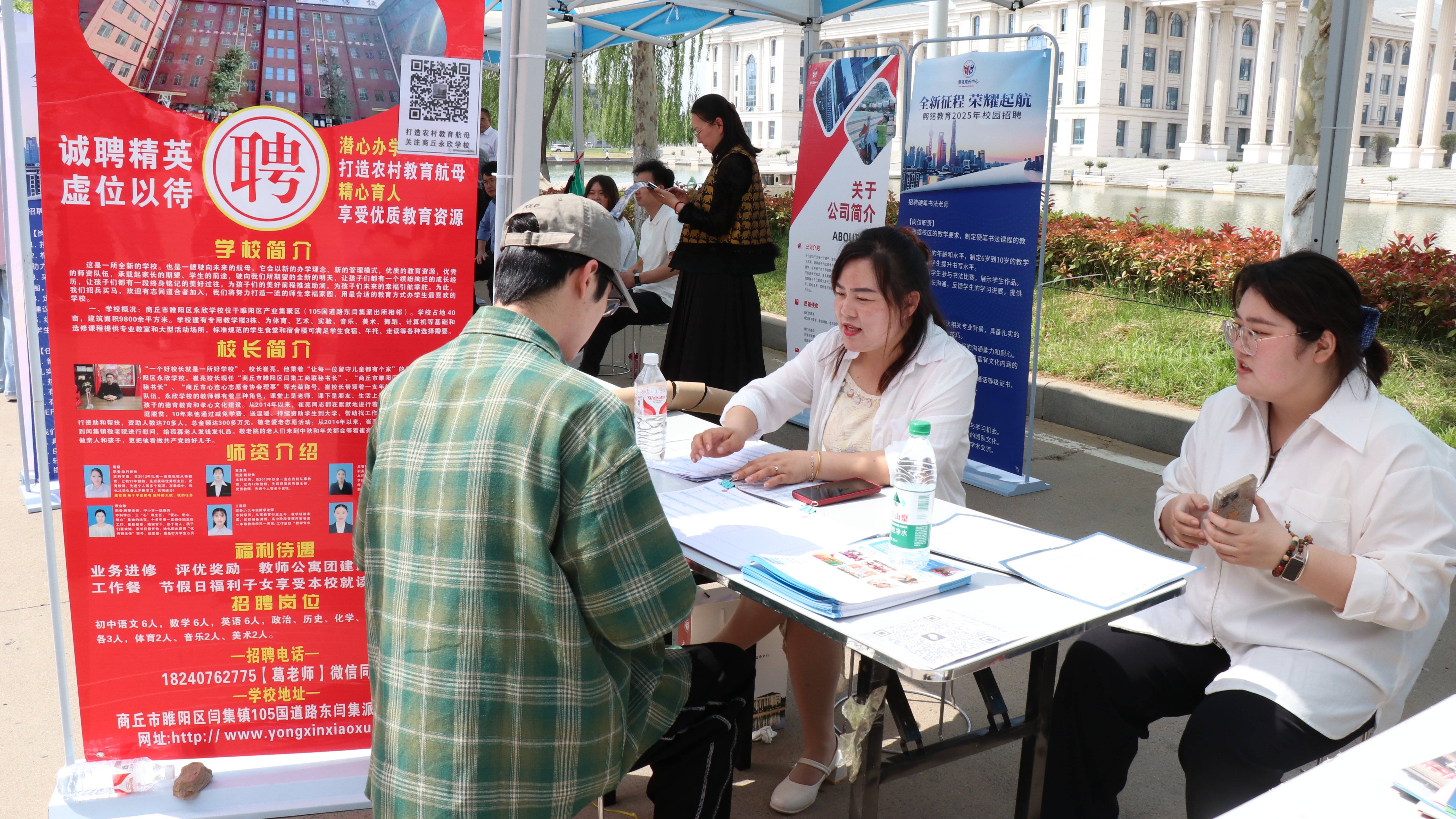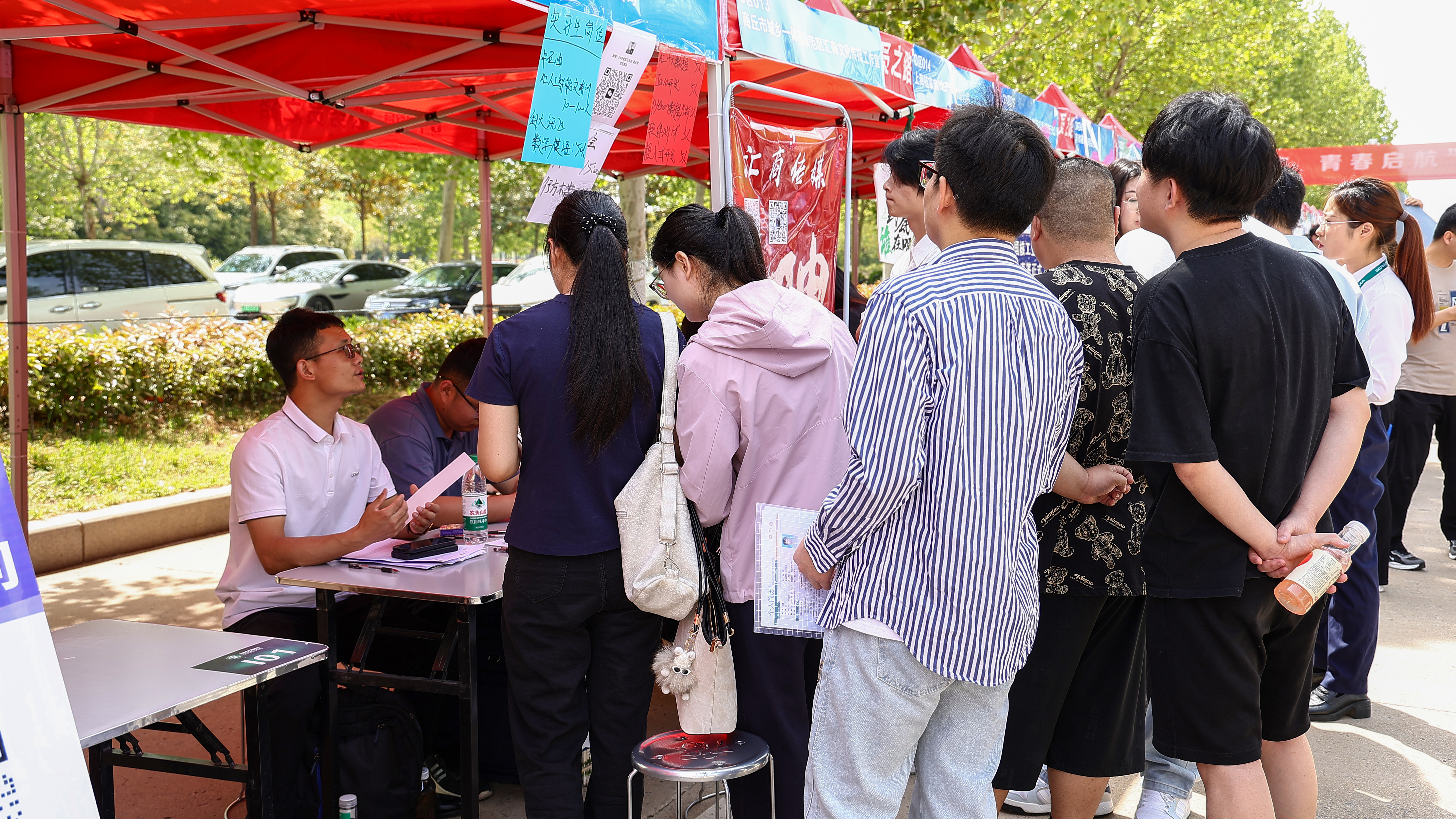 双选会现场,来自北京、上海、江苏、浙江、新疆等地及我省的336家用人单位参会,涵盖教育、电子信息、新能源、智能制造、现代服务业等多个行业领域,累计提供就业岗位14700余个。徐州市、虞城县等人社部门组织多家本土企事业单位组团进校招聘。同时,校友企业招聘专场也同步开启,为毕业生搭建起更加多元、丰富的就业平台,提供了充足的岗位资源与宝贵的就业机遇。