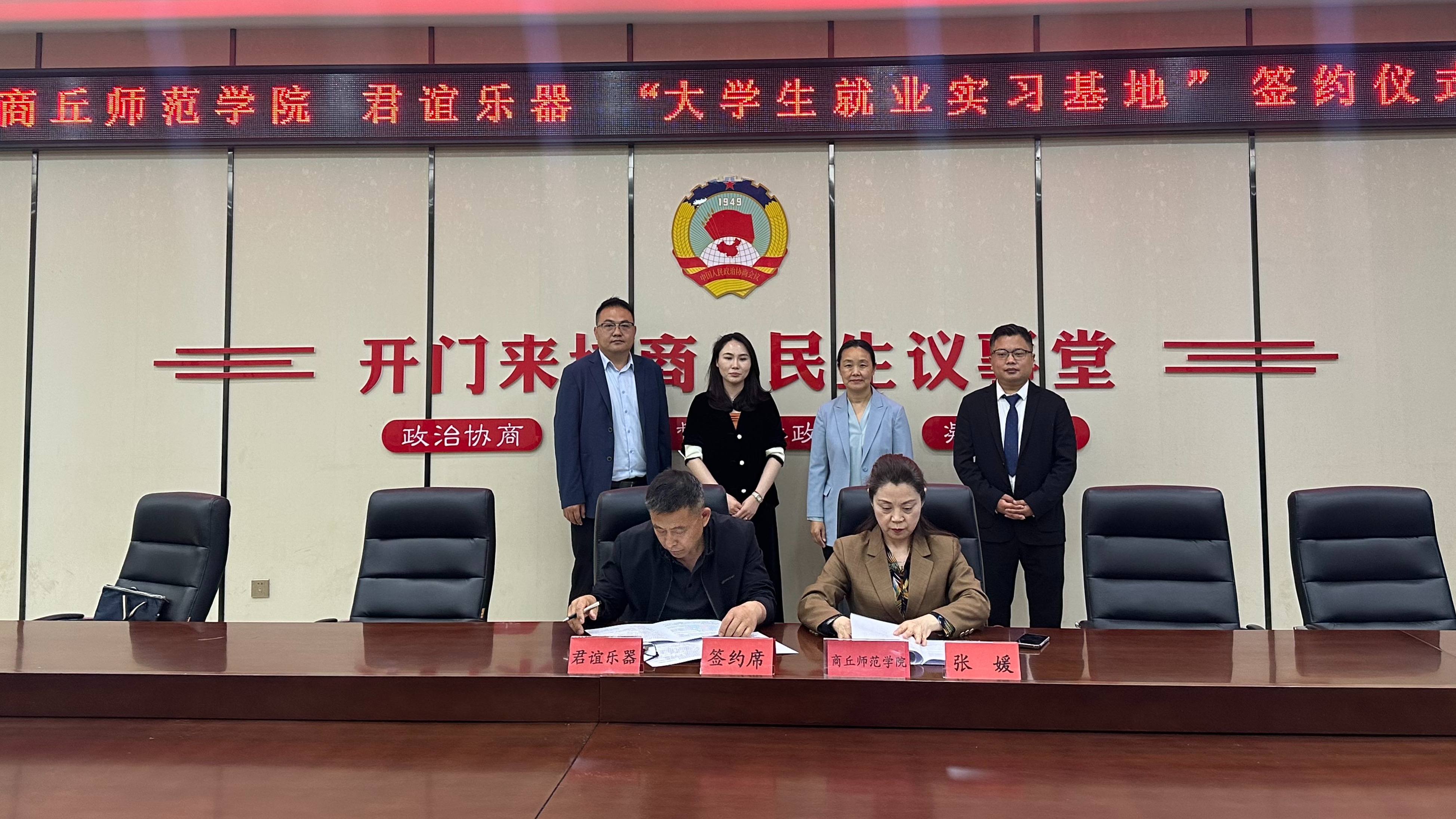 王晓征介绍了学校历史沿革、学科特色、人才培养及毕业生就业等情况。双方就进一步合作深入探讨,相互交流,并签署了《纽约国际手机登录大学生就业实习基地协议书》。随后,王晓征向兰考县君谊民族乐器有限公司、河南弦情乐器有限公司授“纽约国际手机登录就业实习基地”牌。吴思瑾介绍了兰考县堌阳镇民族乐器企业、生产培训、演艺等情况。合作各方在大学生职业体验、实习就业等方面达成初步合作意向。
