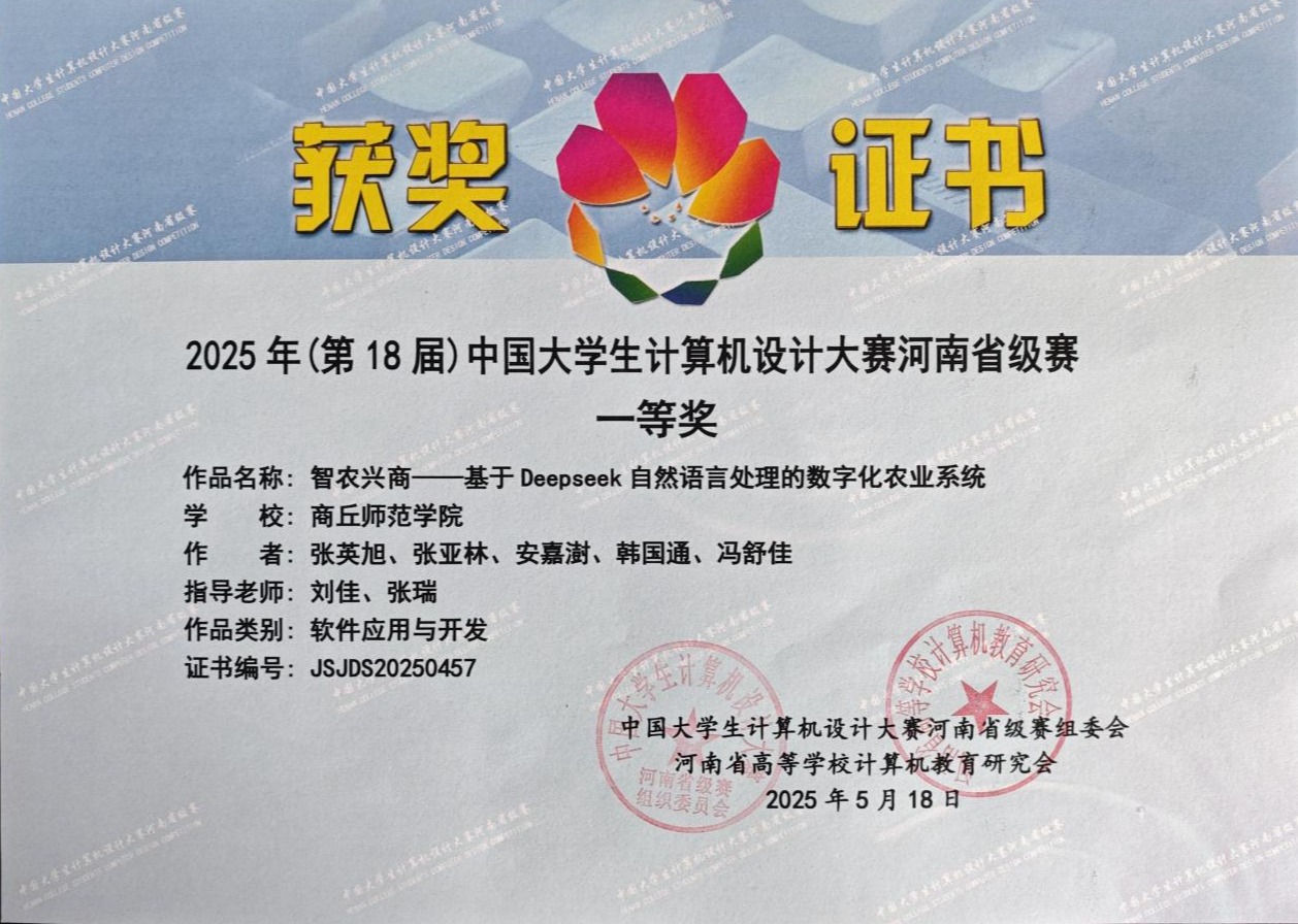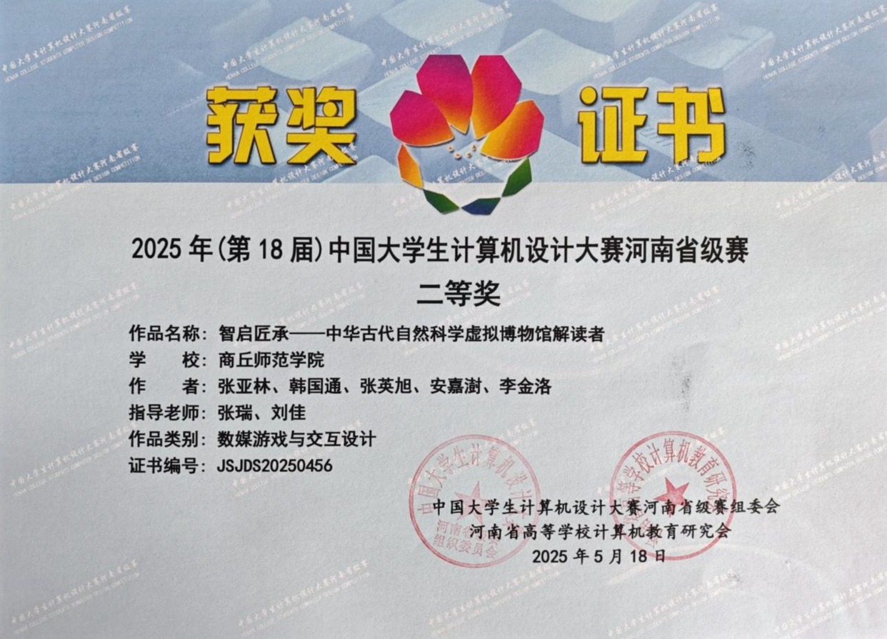 此次大赛吸引了全省60余所高校、超2000名学子踊跃报名,共收到参赛作品800余件,涵盖软件应用与开发、数媒游戏与交互设计、物联网应用、大数据、人工智能等11大竞赛类别。比赛中,信息技术学院学子沉着应战、积极发挥,充分展现出扎实的专业功底与良好的精神风貌。最终,信息技术学院翎创游戏研发社团两支参赛队伍的项目《智农兴商——基于Deepseek自然语言处理的数字化农业系统》斩获一等奖,《智启匠承——中华古代自然科学虚拟博物馆解读者》荣获二等奖,顺利晋级国赛;我院其余两支队伍获三等奖。