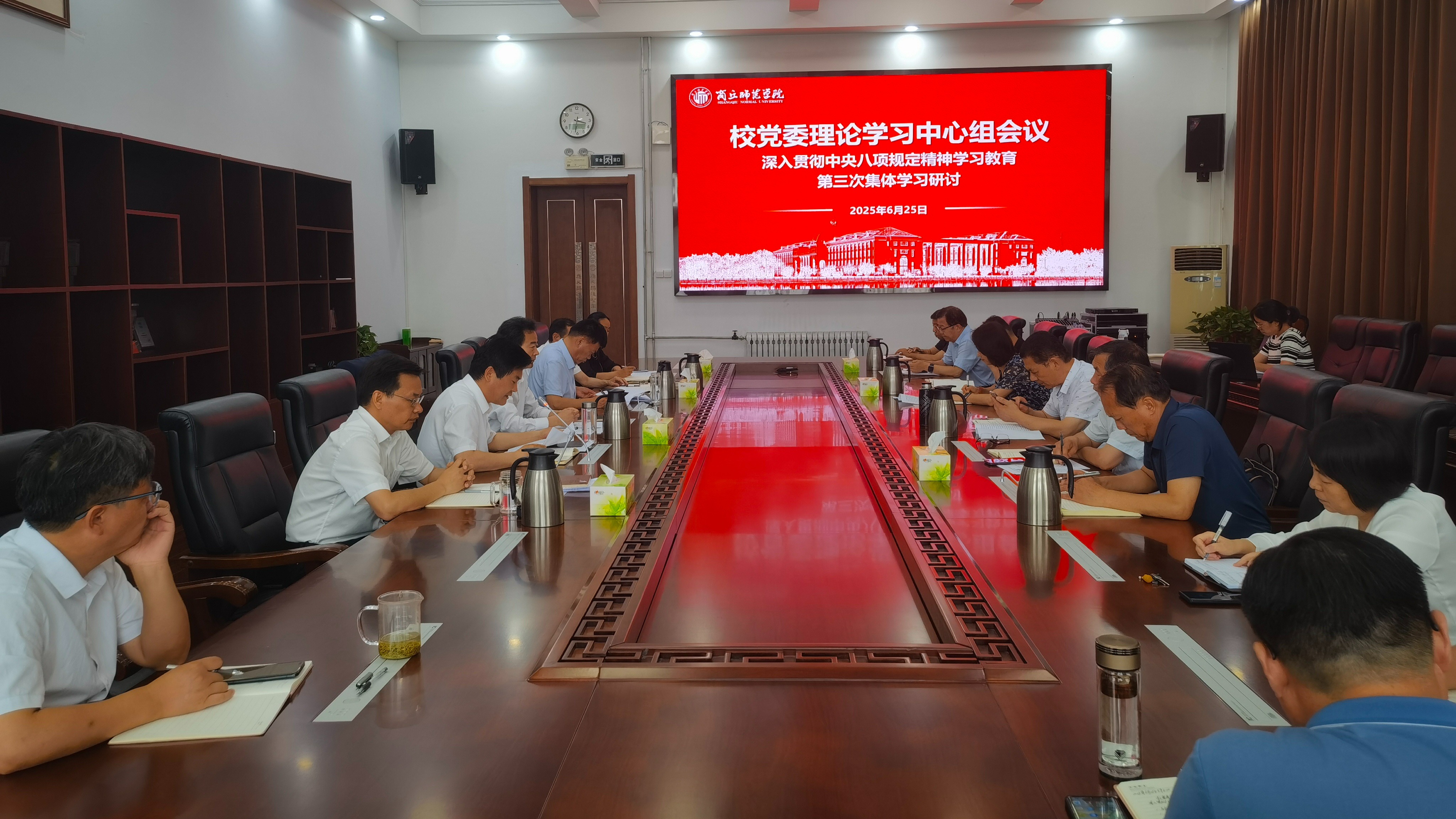 6月25日,校党委理论学习中心组在归德楼320会议室召开学习会议,围绕深入贯彻中央八项规定精神学习教育开展第三次集中研讨。校领导陈向炜、刘国庚、吴金山、何瑞强、张箭、王晓征、刘澜涛及校党委理论学习中心组全体成员参加会议。校长陈向炜主持会议并讲话。