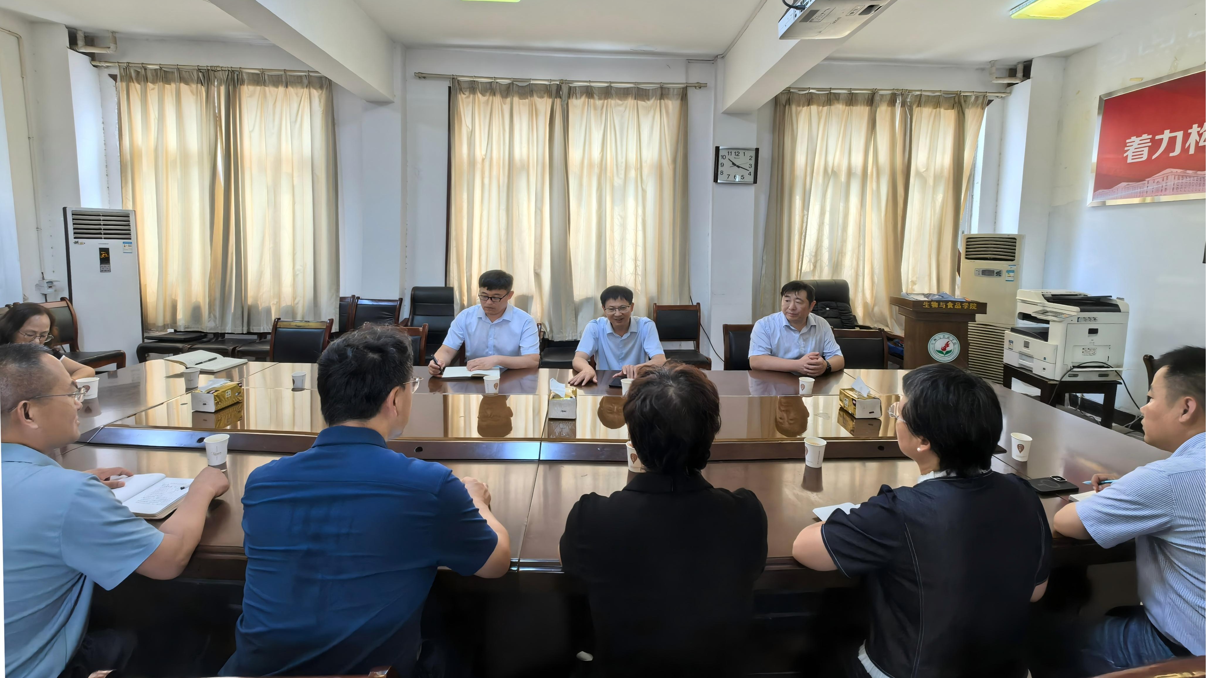 8月14日,校党委书记张尚字带领党政办公室、发展规划处等相关职能部门人员深入化学化工学院、生物与食品学院、教师教育学院开展学科建设调研。