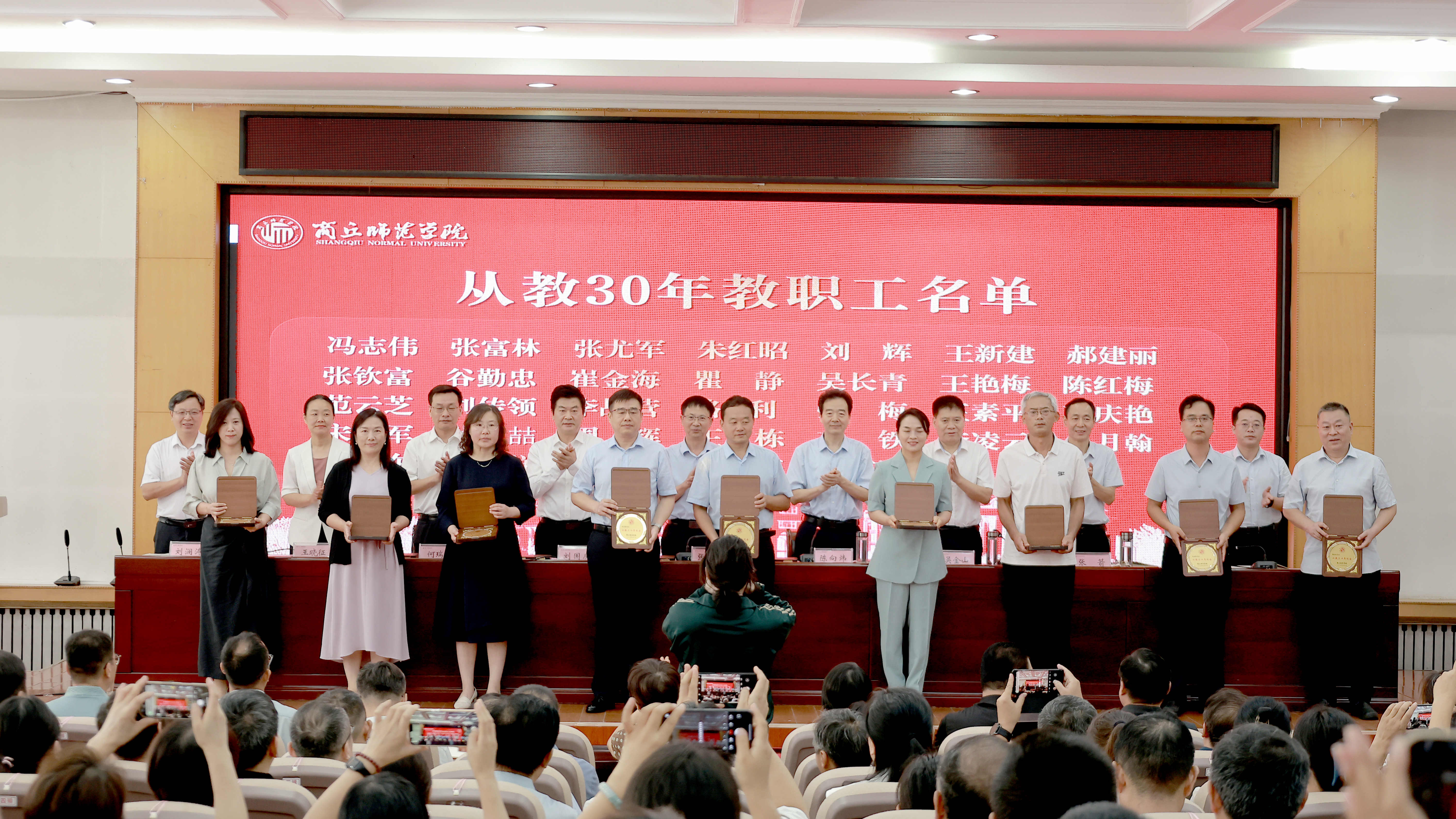 会上先后表彰了从教满30年教职工,2024-2025学年在师德师风、教育教学、科学研究、管理服务等工作取得突出成就的教师。从教满30年教师代表李战营、获奖教师代表李静和学生代表赵成聪发言。