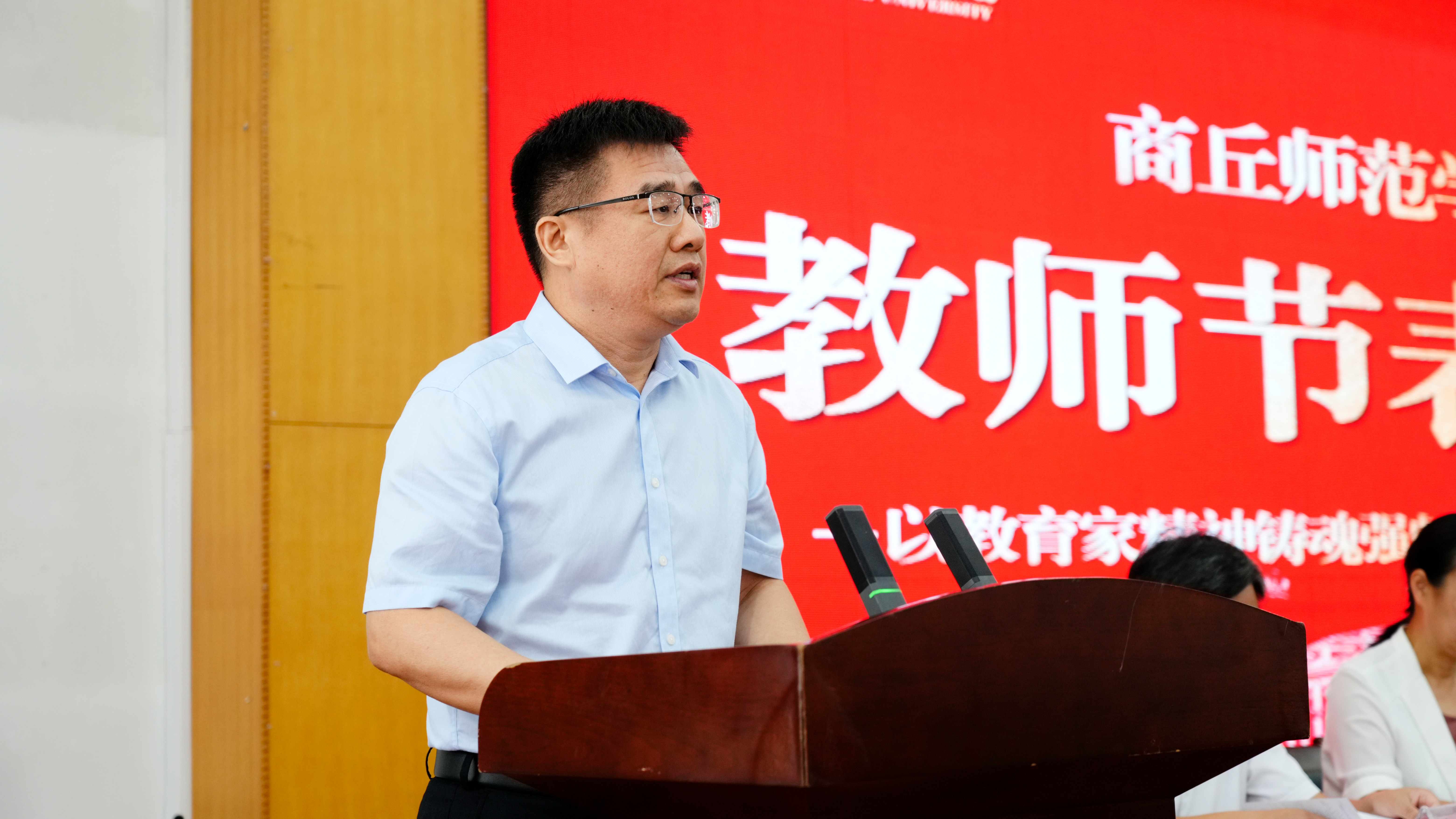 校党委书记张尚字向全体教职员工致以节日问候,向在教育教学工作中作出突出贡献、获得各种荣誉、受到表彰的各位教师表示祝贺,并提出四点殷切希望:一是要涵养家国情怀,做理想信念的引路人,引导学生在实践中坚定信仰,真正把个人成长融入国家发展大局。二是要坚守道德情操,做品格锤炼的示范者,要像爱护眼睛一样爱护学术声誉,像守护生命一样守护师德底线。三是要潜心学术研究,做知识学习的启迪者,围绕国家战略和区域发展需求,聚焦基础研究,服务地方经济,把论文写在车间里、写在田埂上、写在中小学校的课堂中。四是要强化使命担当,做乐教爱生的奉献者,在自我锤炼上花心思,在言传身教上下功夫,在教育引导学生上想办法,做好“经师”、成为“人师”。