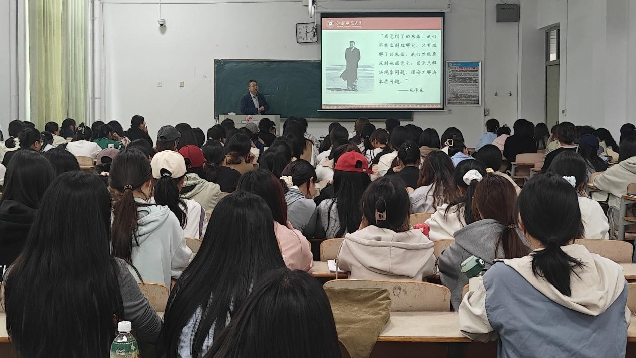 教师教育学院党委书记郭宁作总结发言,她表示,张欣书记的分享贯通教育本质与时代需求,既有百年教育思想的回响,又有对学子成长的精准导航,并寄语学生以“四识”为指引,将个人理想融入教育事业发展,在实践中践行师范生的使命担当。