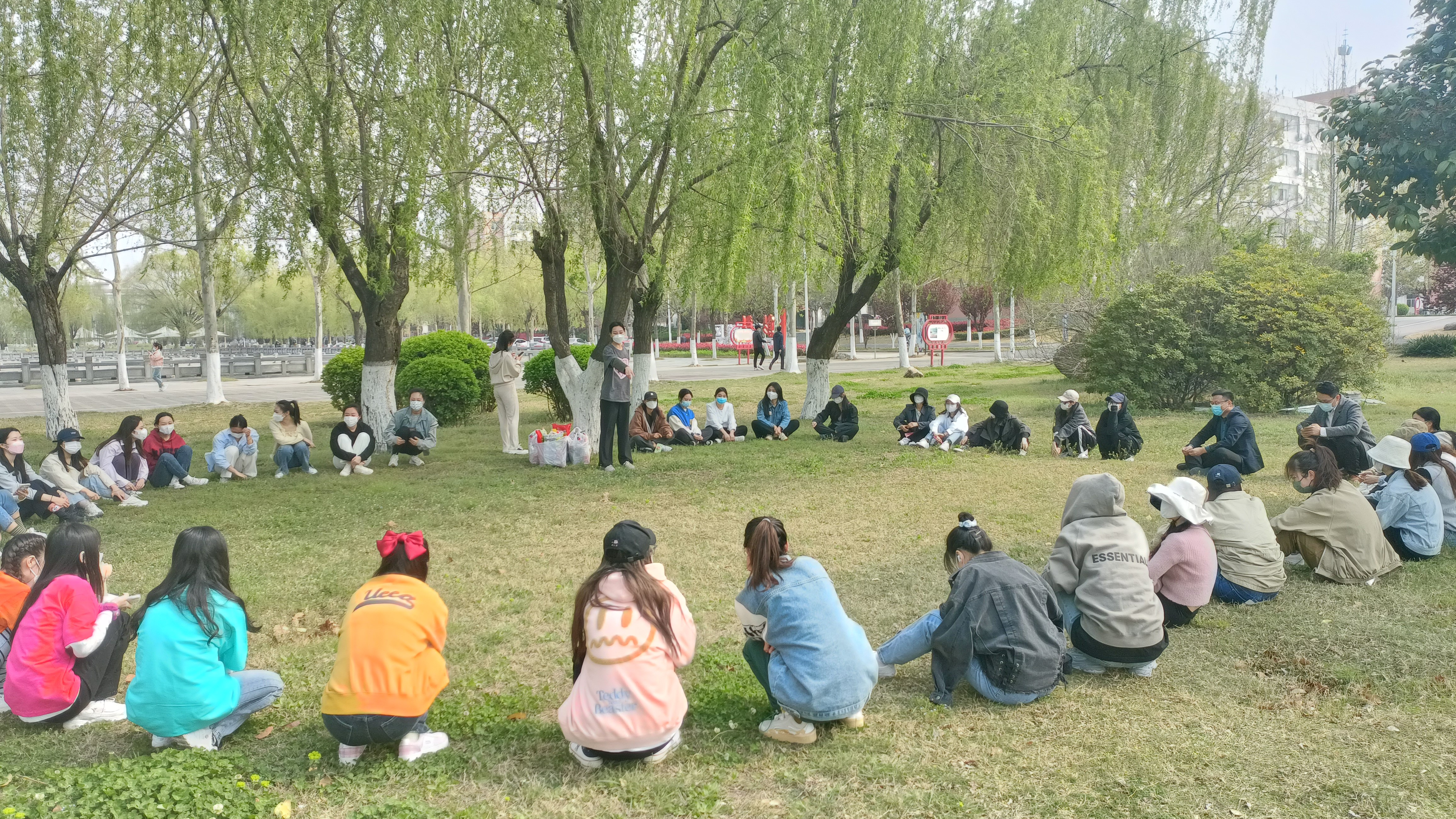 本次活动依托领导联系党支部、班级、宿舍三级联络制度,三个专业,五个班级,在文秀山南侧、艺术楼西侧、体育场北侧,分5个区域开展交流活动。活动分为“说你心声,留你心言”、“疑惑无忧,解惑与你”、“演绎青春,成长展望”三个环节,活动中同学们踊跃发言,畅谈诉求和感想,老师们答疑解惑,阐述经验和感悟,氛围热烈和谐,交流深入深刻。