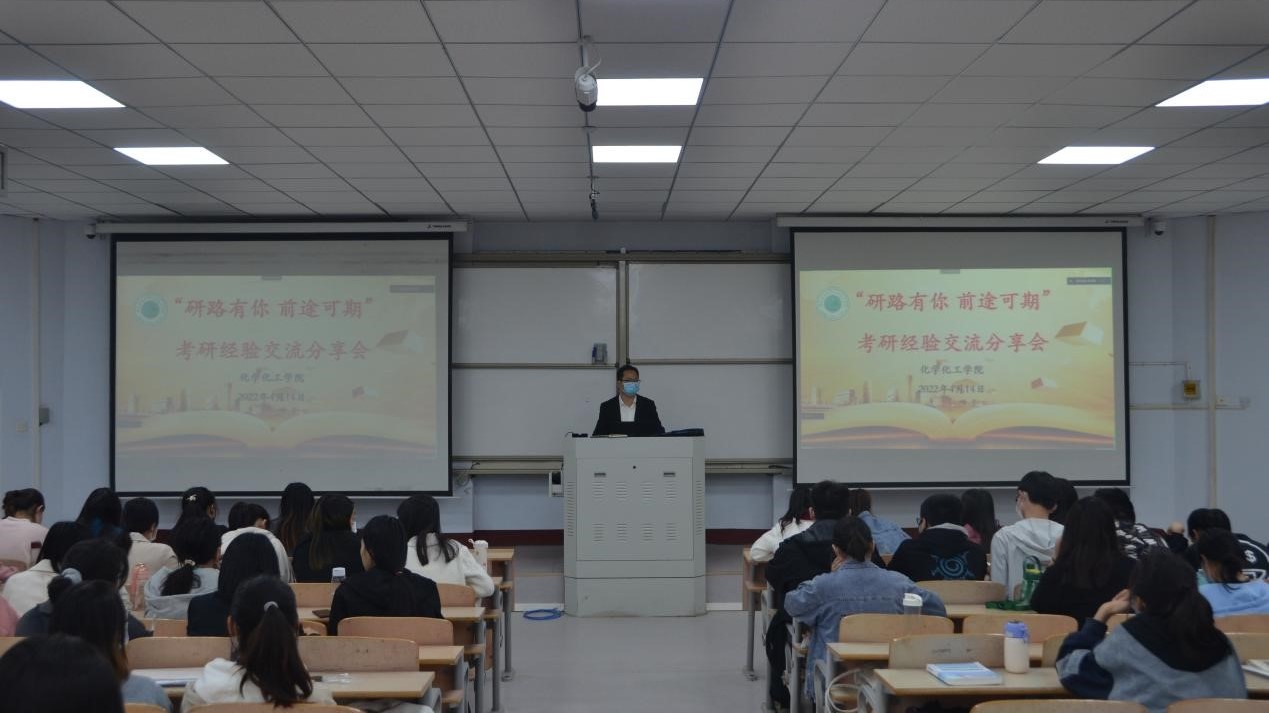 4月14日,化学化工学院在睢阳校区开展了以“研路有你,前途可期”为主题的考研经验交流分享会。此次会议采用线上、线下相结合的方式,化学化工学院有关领导、2019级辅导员、班主任及所有学生参加会议。
