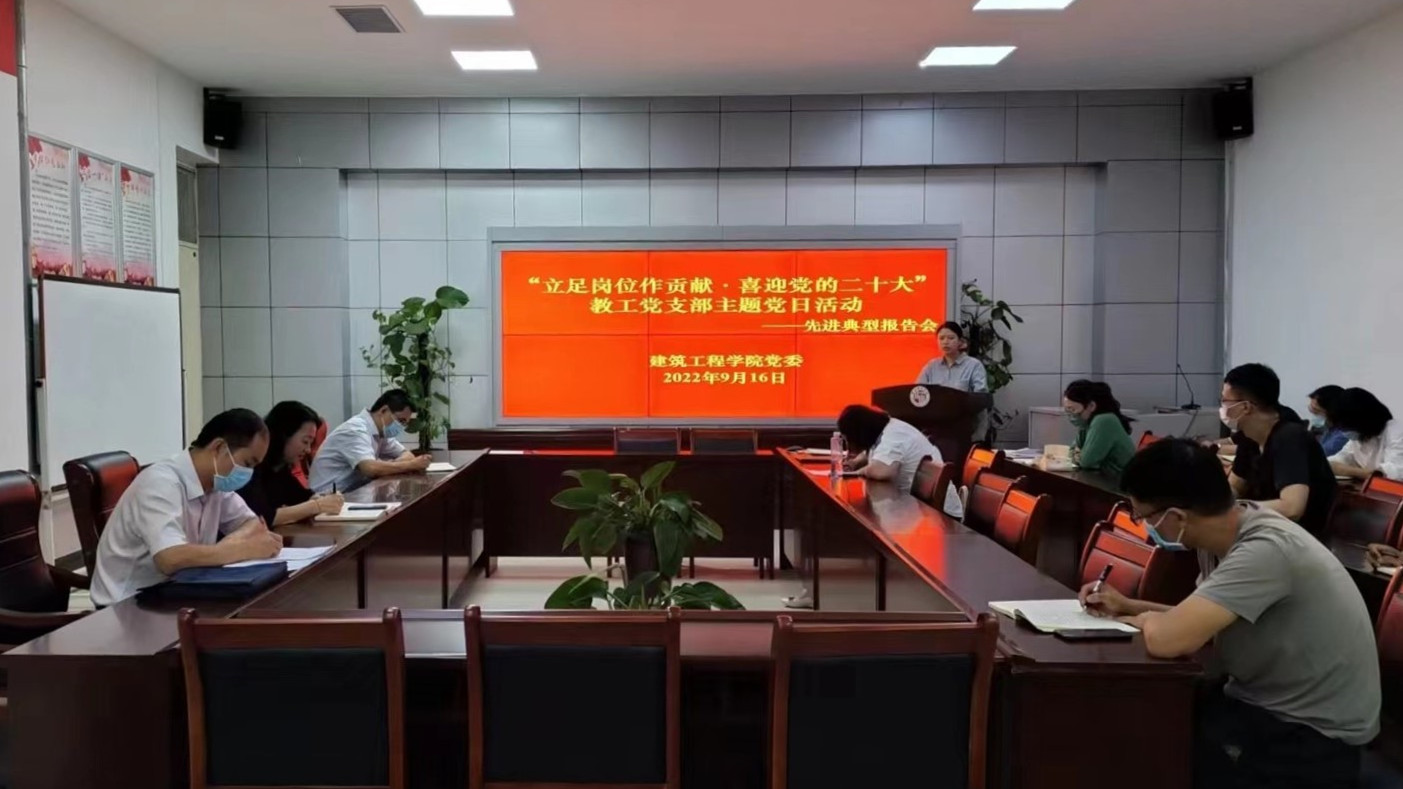 9月16日,建筑工程学院教工党支部和学生党支部分别在汉梁楼121和汉梁楼123,开展了“立足岗位做贡献·喜迎党的二十大”、“青春向党,我为党旗添光彩,喜迎党的二十大”主题党日活动,本次活动由党委书记贾丽主持。