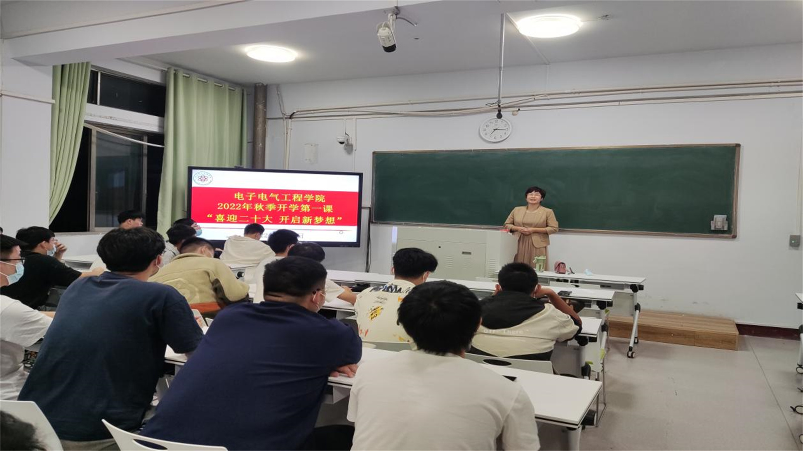 本次主题班会以“喜迎二十大、开启新梦想”为主题,以班级为单位,利用2022年秋季学期学生返校开学的重要契机,为全体同学召开2022年秋季学期开学第一课主题班会。会上,院领导相继介绍电子电气工程学院概况、专业特色及学生活动,带领新生更深入地了解学院情况。各年级班主任及辅导员老师则结合学生特点及学业情况,主要从理想信念、习惯养成、安全教育、职业规划、疫情防控和宗教政策法规等方面进行讲解,引导学生带着青春奋斗梦想,向未来扬帆起航。