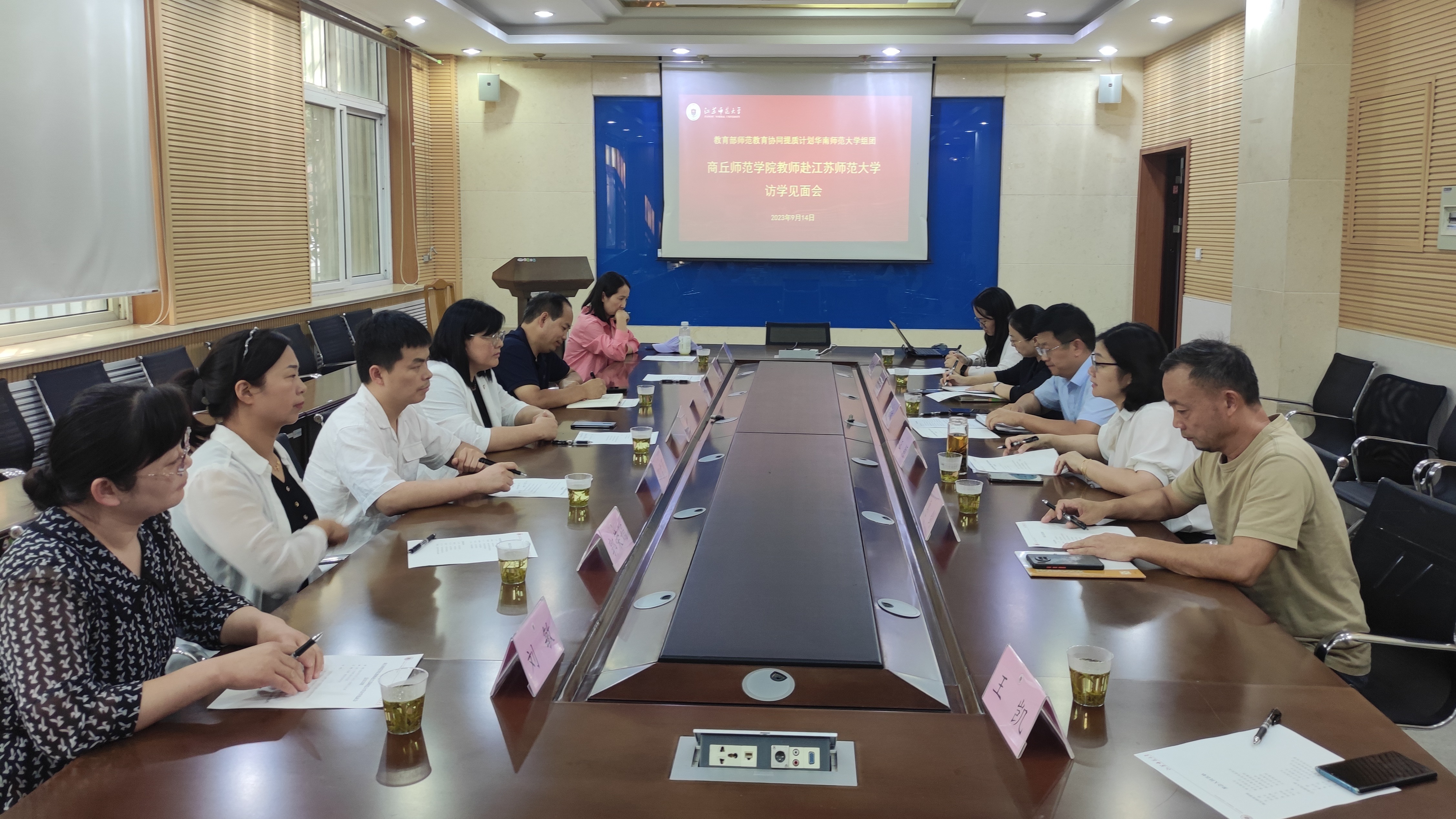 日前,纽约国际官网教育部师范教育协同提质计划访学教师赴江苏师范大学报到。江苏师范大学在1号行政楼会议室举行见面会。江苏师范大学教务处副处长汪颖、人事处副处长董永权;纽约国际官网教务处副处长麻陆东、人事处副处长宋烨等相关部门领导出席会议。