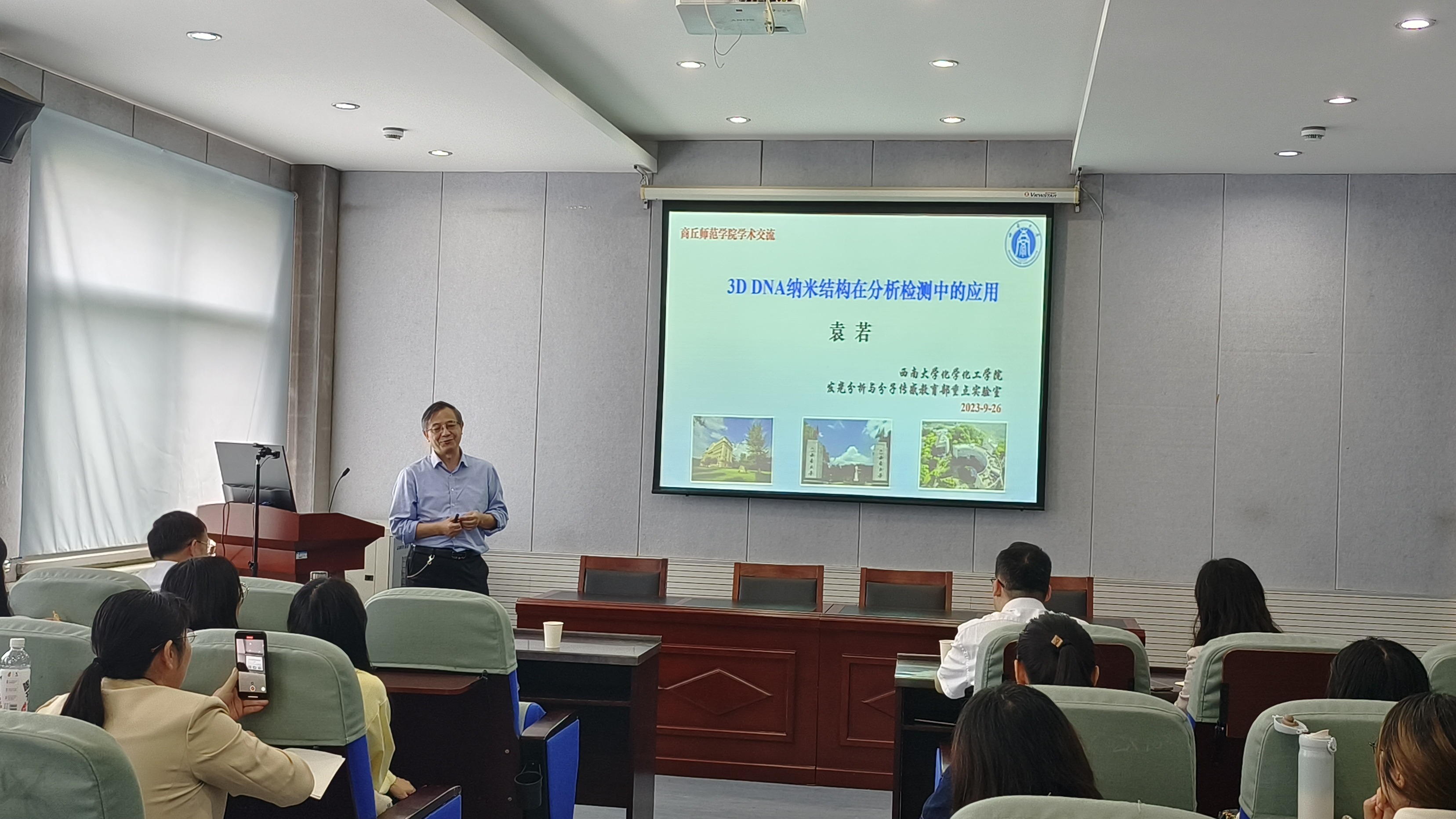 9月26日,应化学化工学院邀请,西南大学袁若教授在纽约国际官网睢阳校区化学实验楼311报告厅作了题为《3D DNA纳米结构在分析检测中的应用》的学术报告。报告会由化学化工学院院长张银堂主持,河南省生物分子识别与传感重点实验室主任徐茂田教授、学院部分教师、研究生及本科生参加。
