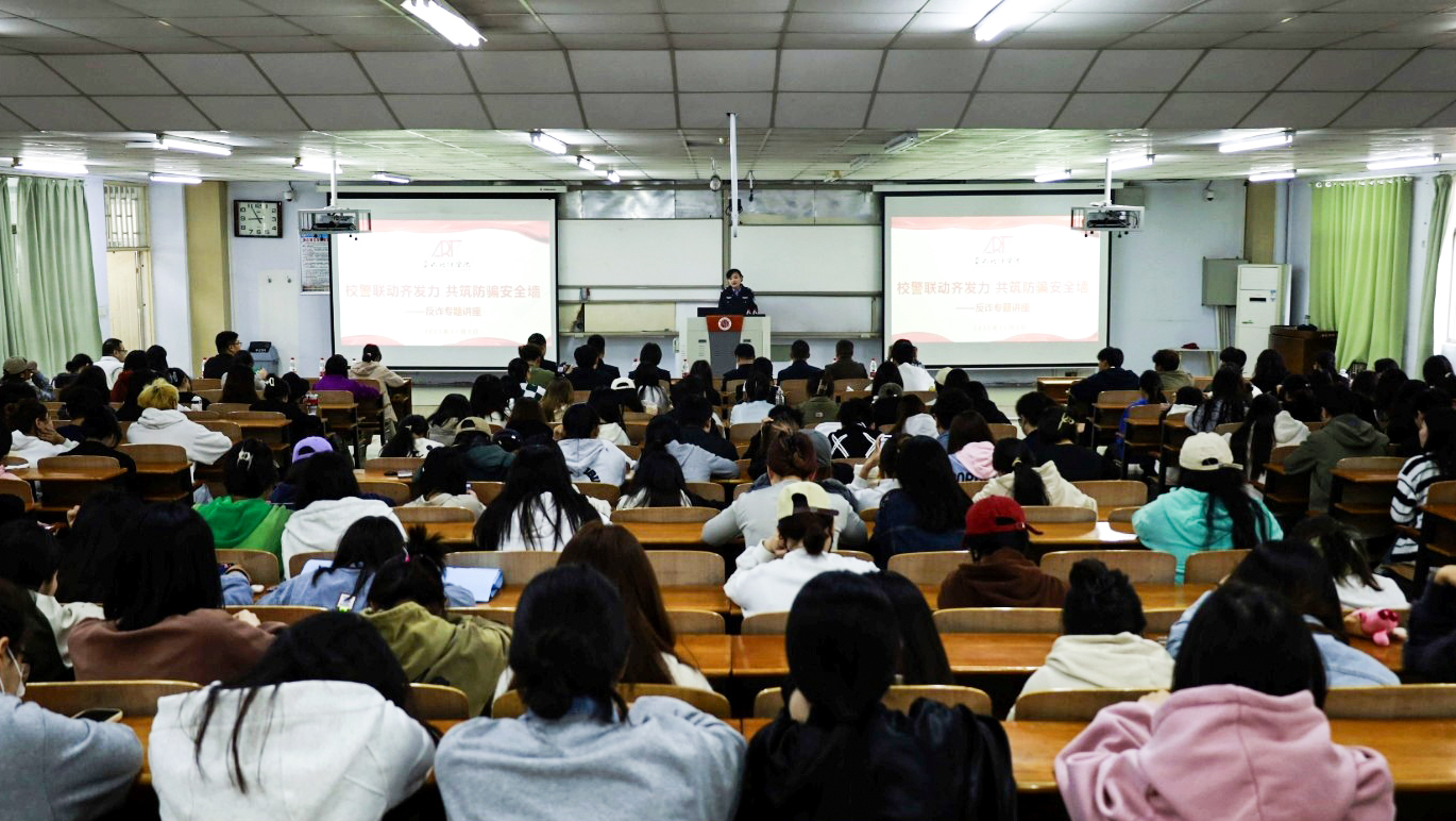 侯峰和孙慧向同学们讲解了校园贷诈骗、网络交友诈骗、电商客服物流诈骗等诈骗形式并向同学们发放防骗科普宣传单。通过以上方式让广大师生对网络电信诈骗有了更加深刻的认识,希望大家能够做到防范于心,反诈于行,共同构成坚实的防骗安全墙,自觉把讲座中学到的预防电信网络诈骗知识及技巧运用到学习和生活中去,推动学生自主传播反诈知识和技能,为平安校园建设做出贡献。最后孙慧提醒大家,增强防范知识,提高防范意识,只有通过积极有效的遏制,才能避免上当受骗。