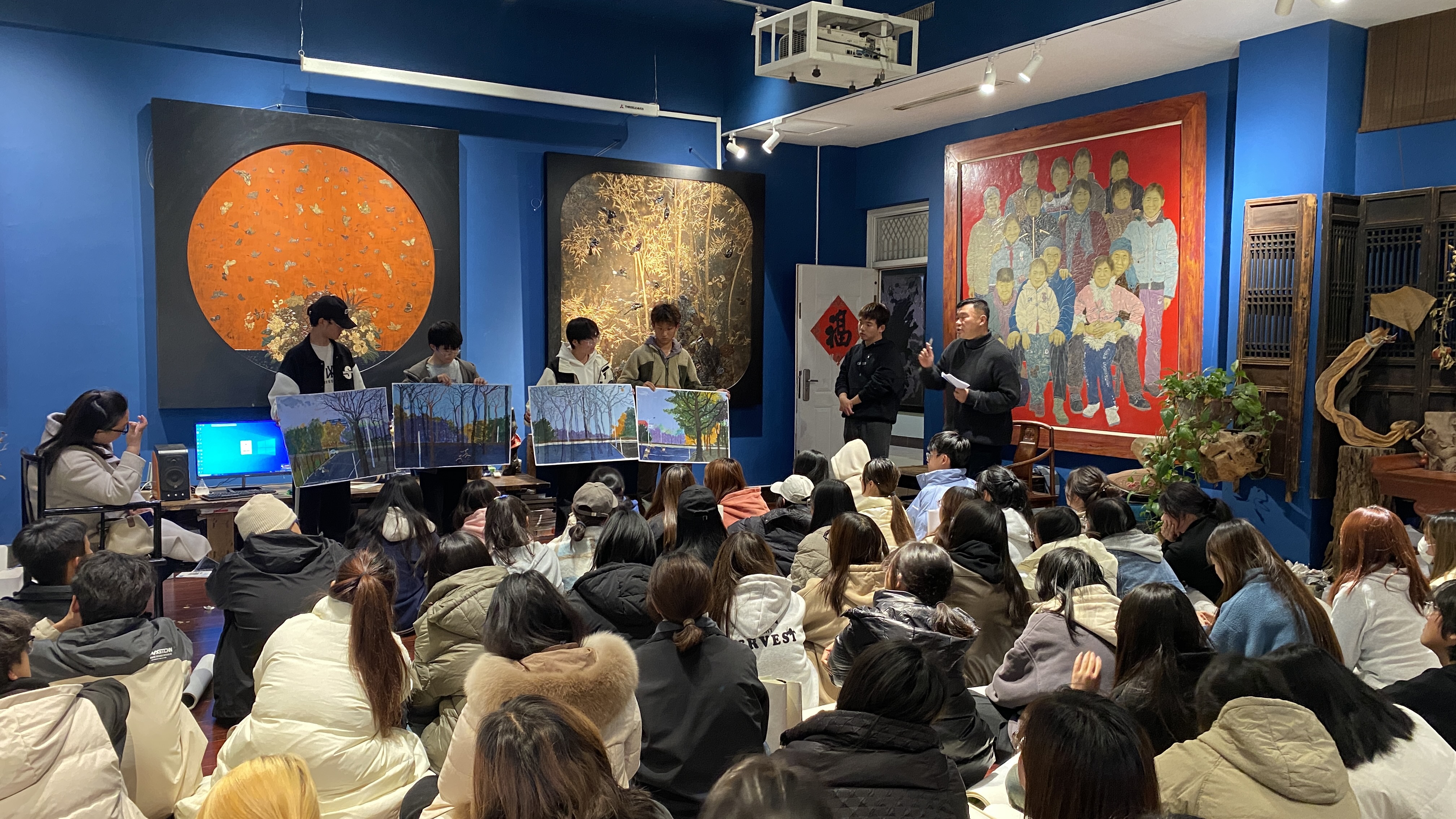程老师一直致力于探索适应当下学生群体的教育教学新方法、新思路和新模式。面对个性多元、想法各异的学生,他深知传统的教学方式已难以满足他们的需求。因此,程老师不断尝试创新,力求找到最适合他们的教育路径。教学实践中,程老师采用了创作带动教学的方法,鼓励学生通过实际创作来提升自己的艺术素养和技能。他相信,艺术创作不仅是技能的展示,更是思想和情感的表达。因此,他引导学生在创作中寻找自我,发掘潜能。此外,程老师还引入了工作室制的教学模式,为学生提供了一个自由、开放的学习环境。在这个环境中,学生可以相互交流、合作,共同探索艺术的无限可能。经常有老师问他:“安营,为什么你的学生画得那么好?”程老师总是谦虚地回答:“只有深耕教学、全心投入,没有人会做不好。”他深知,教育的成功不仅仅依赖于方法,更在于教师的用心和付出。为了给学生创造更好的创作环境,减轻他们的经济压力,程老师甚至自费为工作室的学生提供颜料等消耗大的绘画材料。他的这一举动,不仅体现了他对教育的热爱和对学生负责的态度,也极大地激发了学生的创作热情和积极性。在程老师的指导和鼓励下,学生们也不负众望,近年来参加国家级和省级展览超过100次,其中参与国家级展览60余次。这些展览不仅是对学生艺术技能的肯定,也是对他们创作成果的认可。更令人骄傲的是,部分作品还被艺术机构和个人收藏,这不仅是学生个人的荣誉,也是对程老师教学成果的最好证明。“静待花开”,程老师用他的耐心和智慧,等待着每一个学生的绽放。