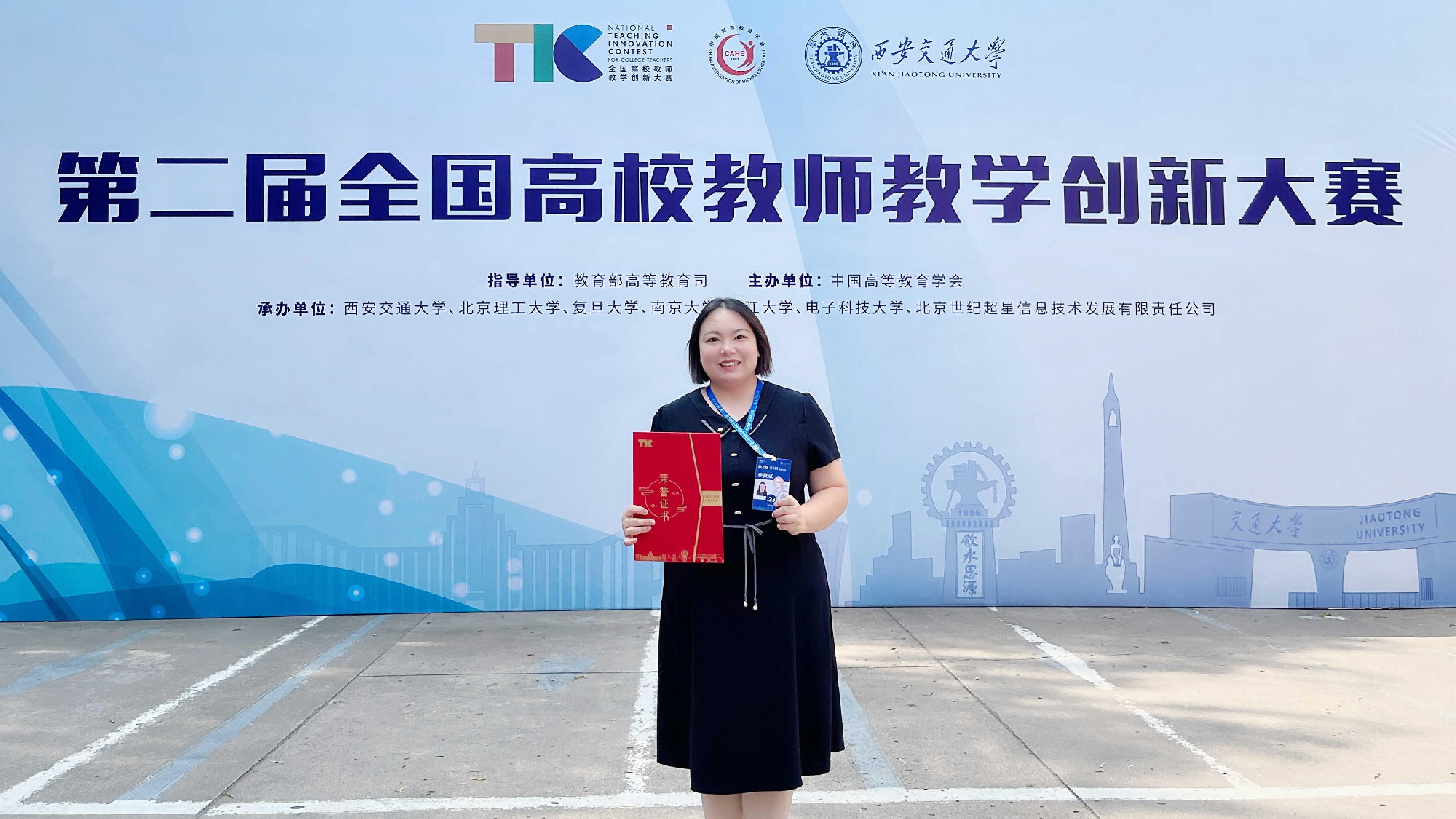 2025年,是张佳乐老师到商师入职的第十年,这十年,她坚持以教学竞赛为发力点,走出了一条具有个人特色的一线教师成长之路,这十年,她以平均一年两场的参赛经历迅速成长,从2017年校青年教师大奖赛工科组第一名,到2022年省赛脱颖而出到站上国赛的舞台,这段历程充满了挑战、成长与蜕变。她说最初参加比赛可能只是本着对教学的热爱,但是要想省赛突围成功,则需要对课程内容熟练吃透基础上的特色凝练,再到国赛的神仙打架,更是各位一线教师立足学校人才培养的深度融合创新。她经常说她是幸运的,商师对一线教师及教学的重视让她被更多人看到,而她身后有一批与她一样优秀的商师教师,她相信一定会在教师教学比赛中看到更多商师力量。