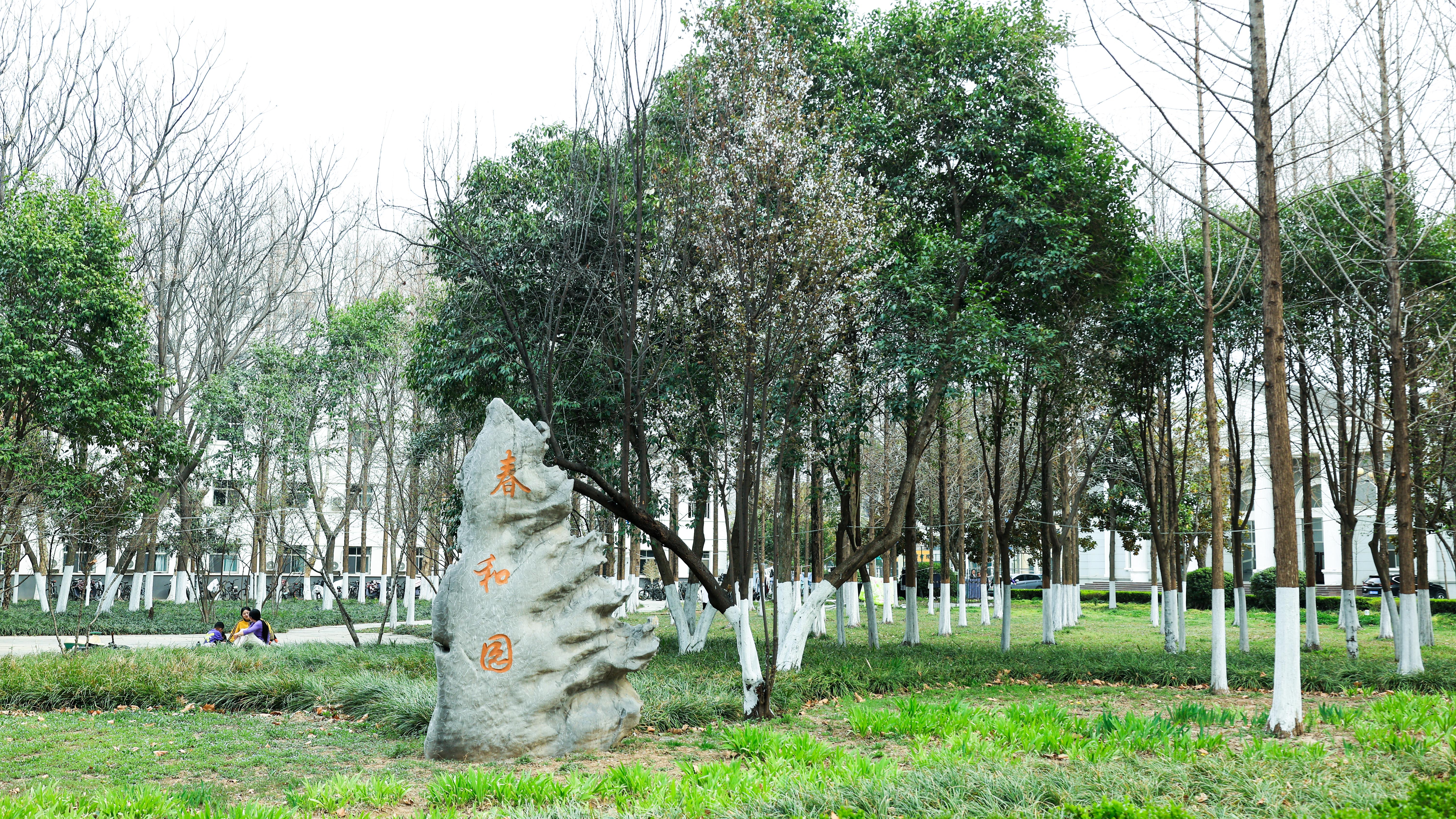 石立春园,树影婆娑,