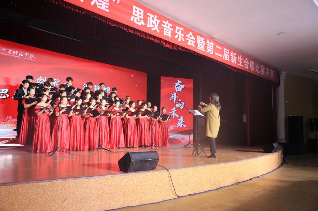 10月30日,学校“创荣光 铸辉煌”思政音乐会暨第二届新生合唱比赛决赛在大学生活动中心唱响。来自各学院的代表队满怀激情,用歌声谱写奋斗之志,奏响了爱党爱国爱校最强音。决赛评委由音乐学院副教授刘凯、党委学工部副部长王成富、校工会副主席解跃、校团委书记李蓉、生命科学与食品工程学院党委副书记郑美霞、历史文化与旅游学院党委副书记景艳、数学与统计学院党委副书记张晔和马克思主义学院党委副书记白艳担当。