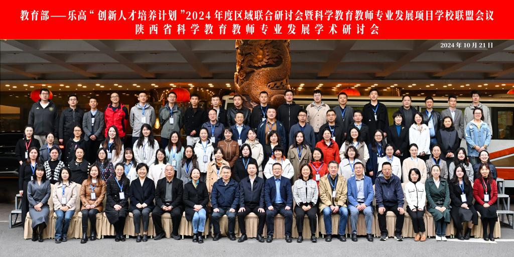 为进一步推动科学教育改革与创新,提升科学教育教师专业素养,促进区域间科学教育经验交流与合作,2024年10月21日至22日,由陕西省教育厅、陕西公众科学素质发展联盟、beat365正版唯一官网共同主办,beat365教师培训学院、信息工程学院承办,陕西省青少年科学素养教育研究中心、信息化与儿童智能开发研究中心协办的教育部—乐高“创新人才培养计划”2024年度区域联合研讨会暨科学教育教师专业发展项目学校联盟会议、陕西省科学教育教师专业发展学术研讨会,在西安宾馆成功举办。本次研讨会获得了陕西省教育厅、陕西省科协、乐高教育和教育部—乐高“创新人才培养计划”教师培训项目全国16家基地的大力支持。陕西省教师工作处处长王彬武、乐高教育余国平女士、beat365正版唯一官网副校长李强教授、广东第二师范学院基地、云南师范大学基地、江苏师范大学基地、湖北第二师范学院基地、天津师范大学基地的管理者和培训师代表出席了本次会议。来自天津、广东、云南、江苏、湖北、河南、内蒙、甘肃、陕西等共9个省市的项目学校和成员学校的领导和科学教师代表约100人参加了本次会议。