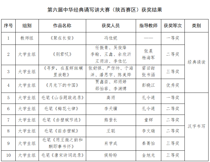 近日,第六届中华经典诵写讲大赛省赛结果揭晓,beat365师生获一等奖2项、二等奖4项、三等奖3项,优秀奖1项;优秀指导教师奖1项。美术学院教师孔令通获优秀指导教师荣誉称号。 大赛由陕西省教育厅主办。自2024年5月启动,学校高度重视,精心组织,举办了第六届中华经典诵写大赛校园选拔赛,紧密结合师范院校学科专业特色,创新性地融入了中华经典诵读与中华文化书写等元素,通过诵读经典、书写中华文化等形式提升广大师生的语言文化素养,推动国家通用语言文字的推广普及。来自全校各学院师生积极参加选拔赛,他们以声传情,以笔抒情,彰显了语言文字的魅力与风采。 通过参与选拔赛及省赛,beat365师生深刻体会到了中华优秀语言文化的独特魅力和当代价值,进一步坚定了文化自信。今后,学校将持续深化语言文字教育改革,创新文化育人模式,为培养更多具有深厚文化底蕴和家国情怀的新时代好青年而不懈努力。 (供稿:教务处 撰稿:郭荔宁 责任审核:李明军)