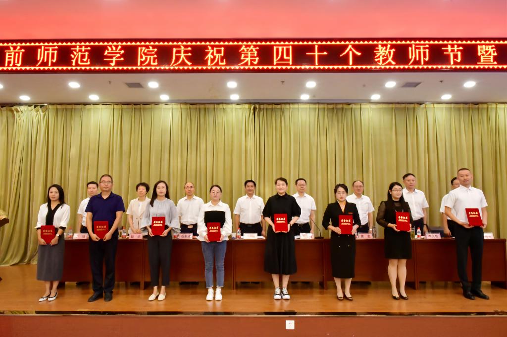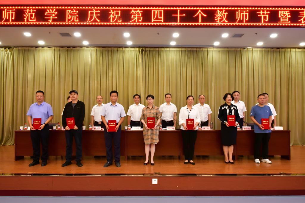 会议表彰了过去一年在教育教学、科学研究、学生管理等领域获得省级及以上荣誉奖项的教师,为“从教三十年”教师颁发荣誉证书。受表彰代表教育科学学院王碧梅副教授、“从教三十年”教师代表生命科学与食品工程学院童广运书记和新入职教师代表郑文峰博士分别作了发言。