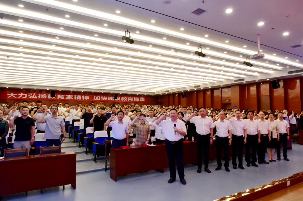 校领导带领会场全体教师共同宣誓。