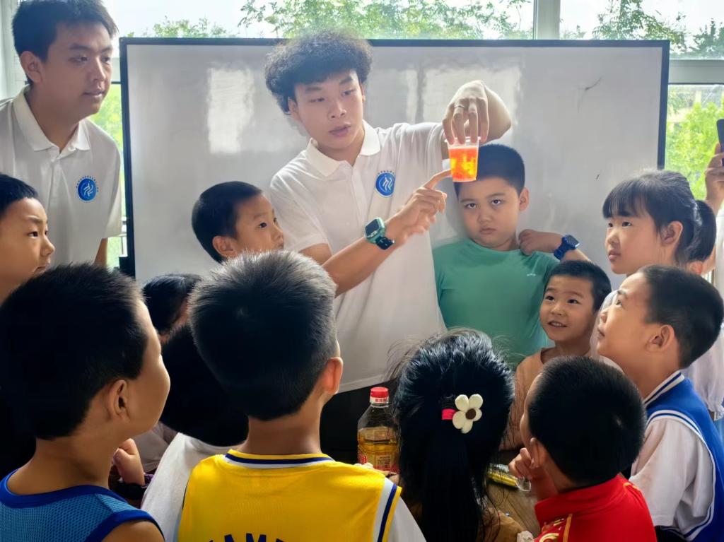 在西安市青年路街道青二社区,“化育童心 学启未来”实践团的志愿者在社区蓝精灵儿童服务站化身“老师”,给辖区孩子们带来“非遗竹编课堂”和“化学小实验兴趣课堂”等课程。实践团队精心策划并实施了一系列精彩纷呈的化学科普实验,开启了孩子们对科学世界好奇与向往的大门。此外,实践队成员还积极投身社区服务,陪伴孤寡老人聊天,帮助行动不便的居民搬运重物、清洁卫生,用实际行动传递着志愿服务的温暖与关爱。