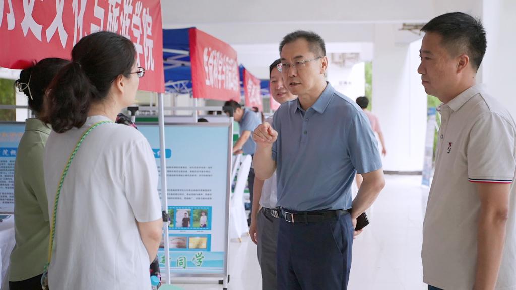 校党委书记邵必林、校长张健,副书记权秋虎、纪委书记赵琼、副校长李强、先后来到2024年校园开放日活动现场,检查、指导本科招生宣传工作,并与来校咨询的考生和家长对谈交流。