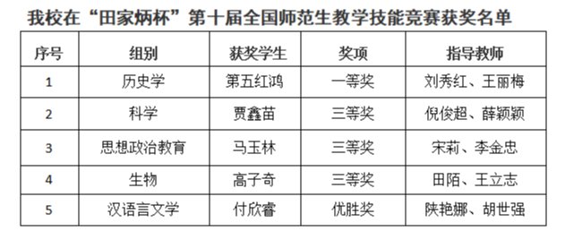 12月1日,“田家炳杯”第十届全国师范院校师范生教学技能竞赛在浙江师范大学落下帷幕。经过初赛、决赛的激烈角逐,beat3655名选手获奖。其中一等奖1项、三等奖3项,优胜奖1项,学校首次在国家级师范生教学技能竞赛取得一等奖(最高奖)的突破。