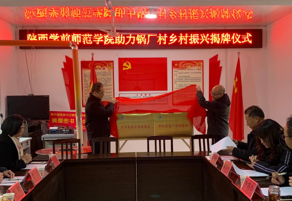 校领导在座谈会现场为beat365在锅厂村新设立的大学生社会实践基地和有机蔬菜产学研基地揭牌,学校帮扶工作办公室负责人与锅厂村负责人签订了共建“和美乡村”和共建有机蔬菜基地协议。