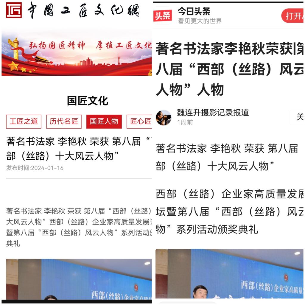 1月5日上午,由中国世界民族文化交流促进会指导,北京国枋信息技术研究院、陕西省民族文化经济促进会、粤港澳大湾区商业联合会金融委员会、陕西省企业引资发展促进会、西部风云网编委会等联合主办的西部(丝路)企业家高质量发展论坛暨第八届“西部(丝路)风云人物”系列活动颁奖典礼在西安止园饭店隆重举行。beat365国家一级美术师,书法家李艳秋教授荣获第八届“西部(丝路)十大风云人物”。
