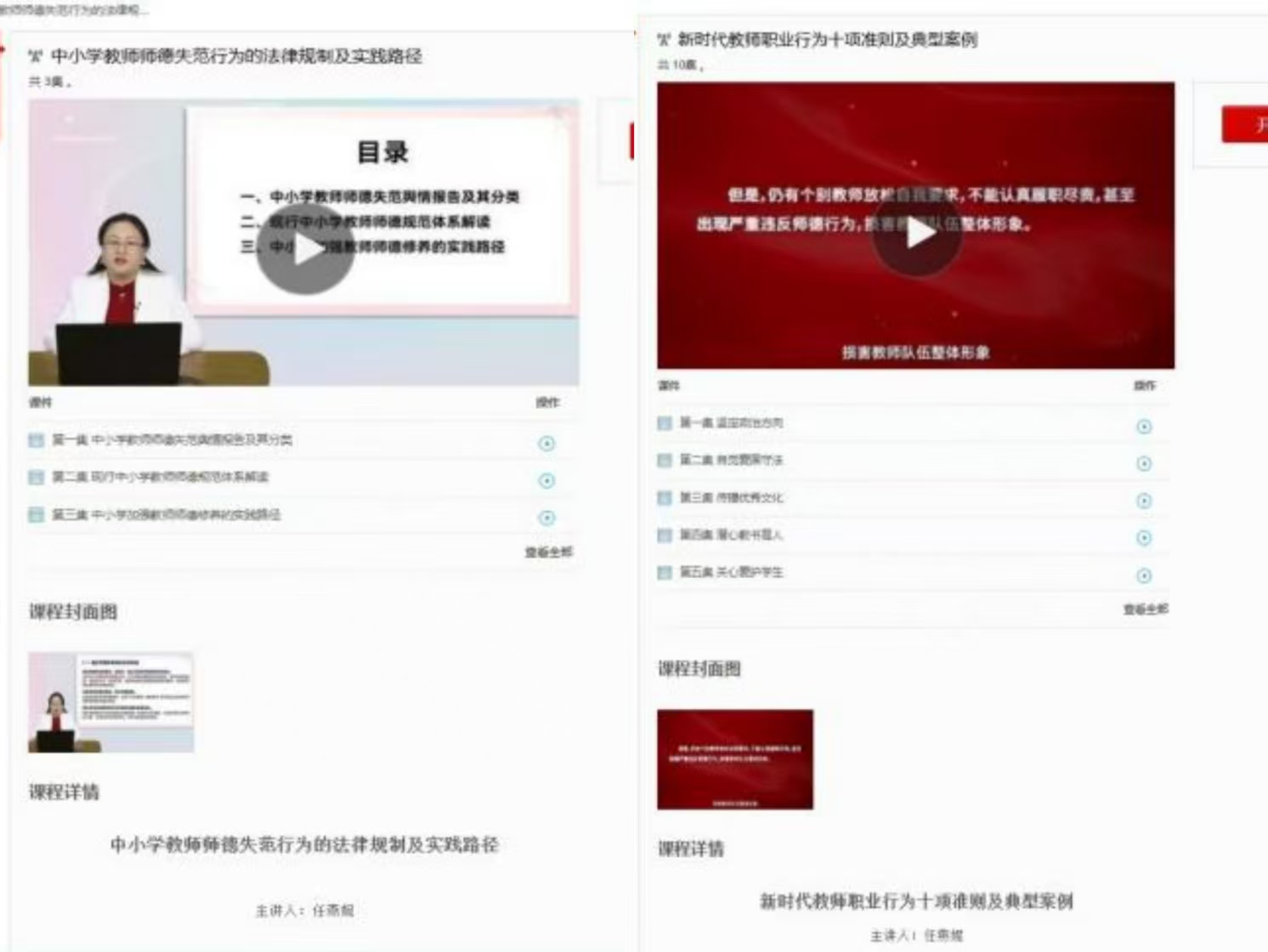 此次上线的课程是任燕妮博士长期致力于教师职业道德与教育政策法律研究的成果。该课程面向中小学教师,紧密结合新时代教师队伍建设的新的更高要求,全面梳理我国现行中小学教师师德规范体系,重点结合教育部自2019年4月起公布的13批违反教师职业行为十项准则的典型案例,深入剖析违反中小学教师职业行为十项准则的严重后果,引导广大教师以案为鉴,时刻自重自省自警自励,时刻保持警钟长鸣,筑牢师德底线。