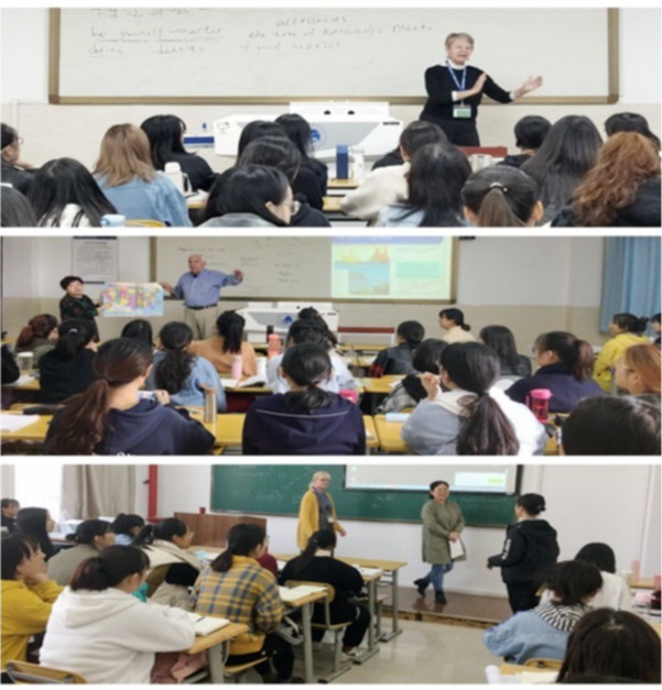 学校坚持“送出去”和“请进来”相结合的原则,不断提升教师专业水平,提升教育教学质量。从英国、日本、新加坡、丹麦等国家邀请近20名外籍教师和专家,开展外语教学、专题讲座等活动。通过服务教师质量提升,带动课堂授课方式、人才培养模式、学术研究方法的更新。