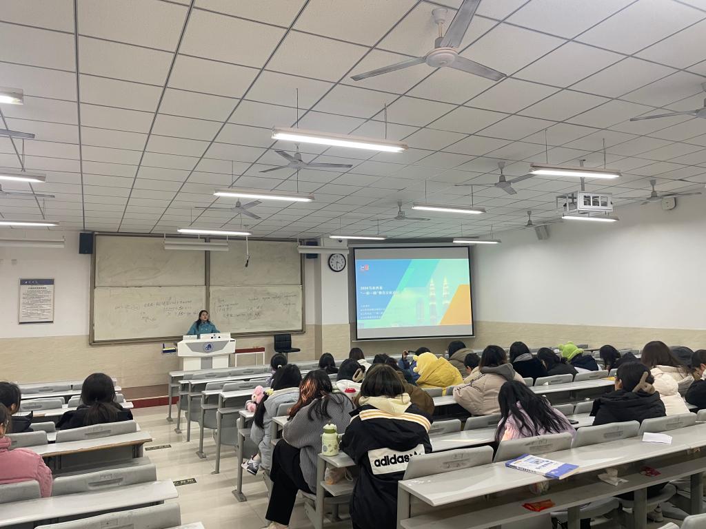 活动期间,王主任以马来西亚国立师范大学的研学项目为例,详细解说了在“一带一路”背景下马来西亚的国家概况、中马教育制度的不同以及当地的历史与文化,并就马来西亚国立师范大学的办学历史、教育特色、学习亮点、文化合作等一一进行讲解,为学生们了解马来西亚教育与文化特色、马来西亚大学独特的历史与浓厚的学术氛围创造了有利条件。