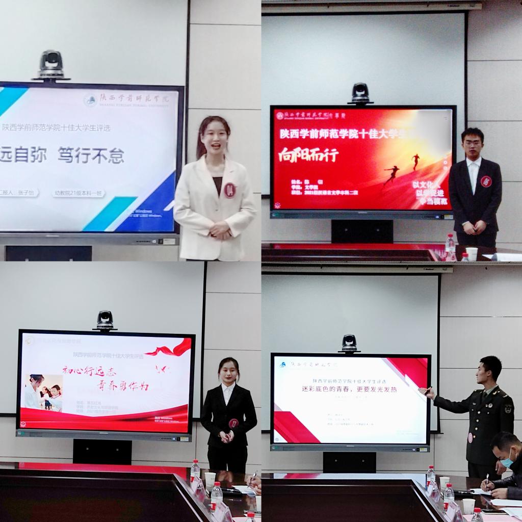 会议首先介绍了十佳大学生评选条件、评选程序及评选办法,经过前期个人申报、学院选拔推荐、学生处审核,15位表现突出的候选人进入最终答辩评审环节。评审现场,15名“十佳大学生”候选人按照抽签顺序,结合PPT演示,逐一进行了限时5分钟的陈述。他们从思想引领、专业学习、创新创业、社会实践、志愿服务、文化活动等方面介绍了各自的大学生活。他们中,有各项竞赛的佼佼者,也有实践创业的领先者,有目标明确的追梦者,也有志愿公益的奉献者和身着橄榄绿的退役军人。他们以梦为笔,书写青春华章,他们对专业知识的深入理解、对志愿服务的关心关注、对科技创新的高标准严要求充分展现了beat365学生求实进取、昂扬向上的精神风貌和新时代青年大学生的使命担当。
