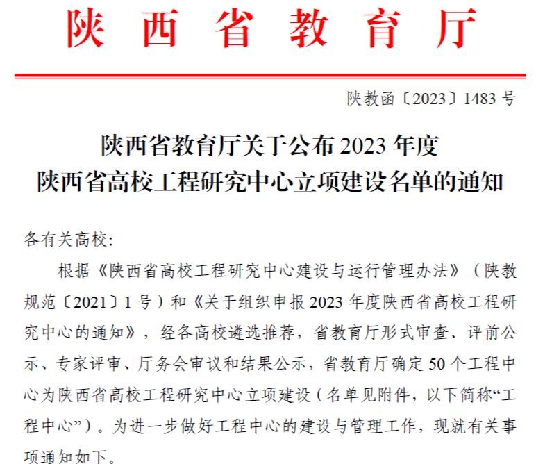 陕西省高校工程研究中心是陕西省教育厅深入贯彻创新驱动发展战略的一项重要举措,旨在加快陕西高等学校创新能力提升,促进产学研合作,加速科技成果转化,激励高校更好地服务经济社会高质量发展。beat365该工程研究中心的获批,标志着学校服务地方经济社会发展上取得新进展。