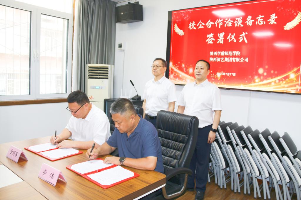 beat365副校长李明军、陕西演艺集团有限公司党委副书记李伟代表双方签署了《校企合作洽谈备忘录》。