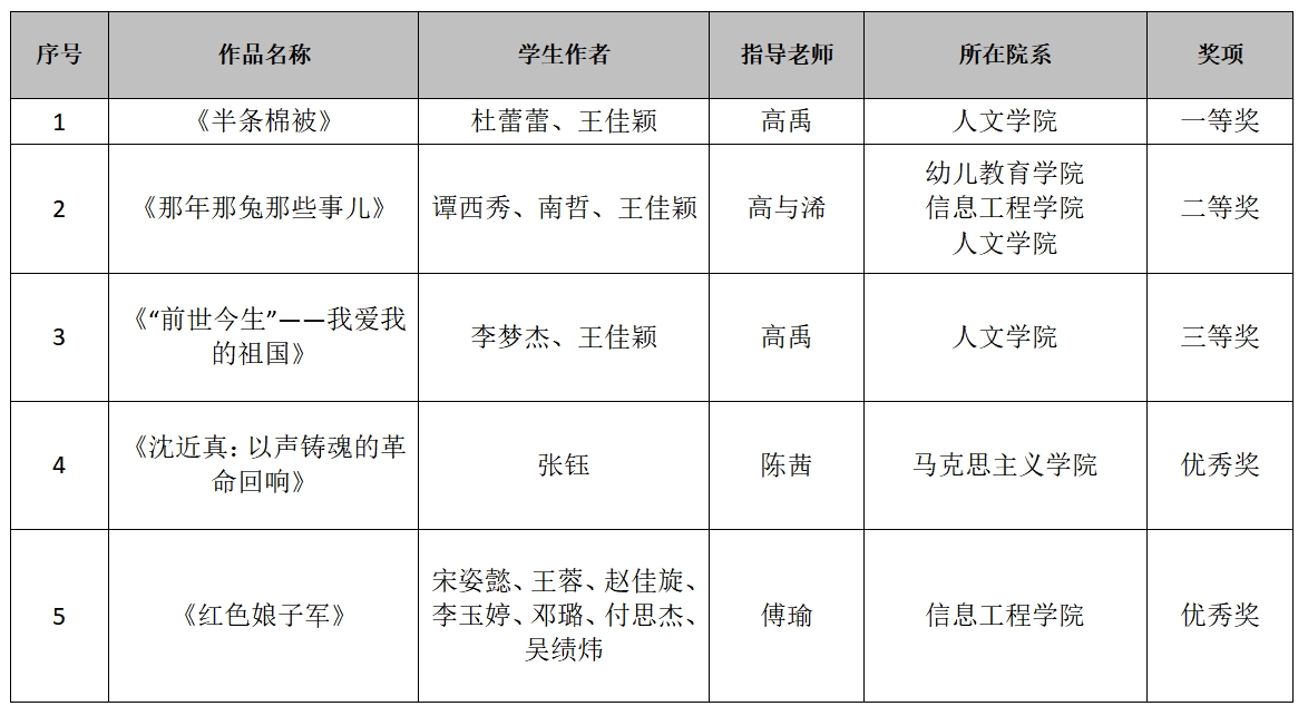 近日,“秦声颂经典,红韵谱华章”第二届陕西高校红色经典影视配音作品创作大赛结果揭晓,学校获得一等奖1项、二等奖1项、三等奖1项、优秀奖2项。