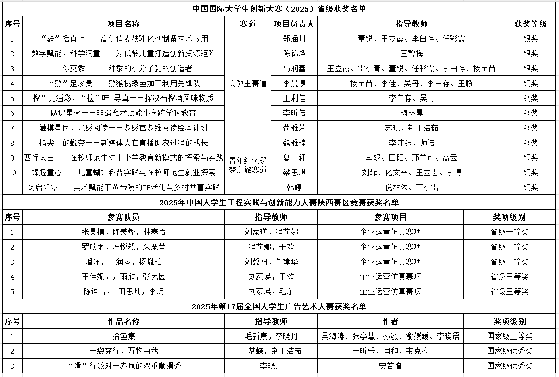 学校11个项目团队在中国国际大学生创新大赛(2025)陕西赛区省级复赛中获奖,其中银奖3项、铜奖8项。