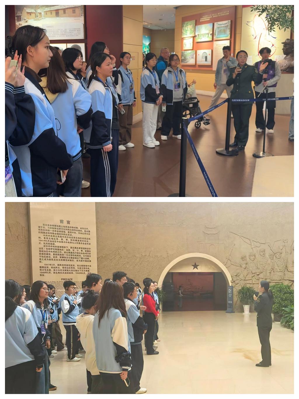 在延安革命纪念馆,青年学子透过一件件珍贵革命文物、文献和照片,深刻缅怀老一辈革命家在延安住窑洞、吃小米、驱日寇的光辉业绩。在枣园革命旧址,大家走进一排排质朴的窑洞,看到了毛泽东、周恩来,任弼时等老一辈革命家在此运筹帷幄,书写了中国共产党从艰难走向胜利的壮丽篇章。在西北局旧址,4000平方米展厅重现西北革命根据地光辉历程,从刘志丹、谢子长创建根据地到成为中央红军落脚点,见证土地革命至解放战争的关键转折。每到一处,学生们都认真聆听讲解,不时交流心得,时而驻足仔细观看,时而拿起手机拍摄文物,在实地研学中深切领悟延安精神的深刻内涵。