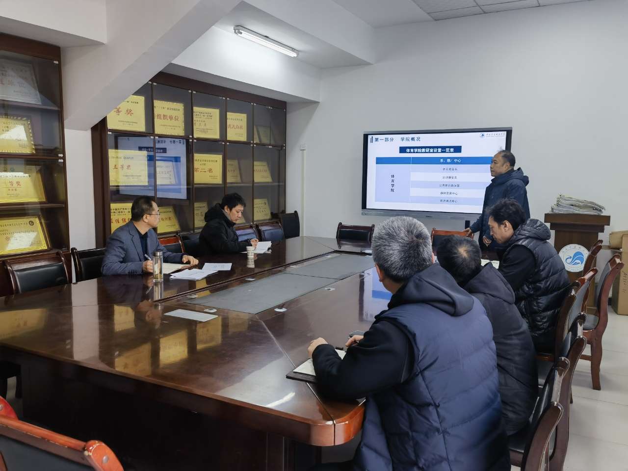 张校长对体育学院近年来的良好发展态势及取得的成绩给予了肯定。并指出,体育学院承担着全校体育课程教学及体质测试工作,是学校发展的重要一环,要以培养学生个性、增强身体素质为目标,使每一个学生掌握至少一项体育技能,培养学生终身体育意识和能力,坚持五育并举,促进学生全面发展;学院基于陕西中华优秀传统文化(红拳)传承基地建设取得的成效,特色可以再挖掘、再发展;要把准学院定位,明确办学目标和方向,厘清公体教学与体育专业人才培养之间的关系,进一步加强统筹谋划,突出特色,把专业办出水平,办出高度。