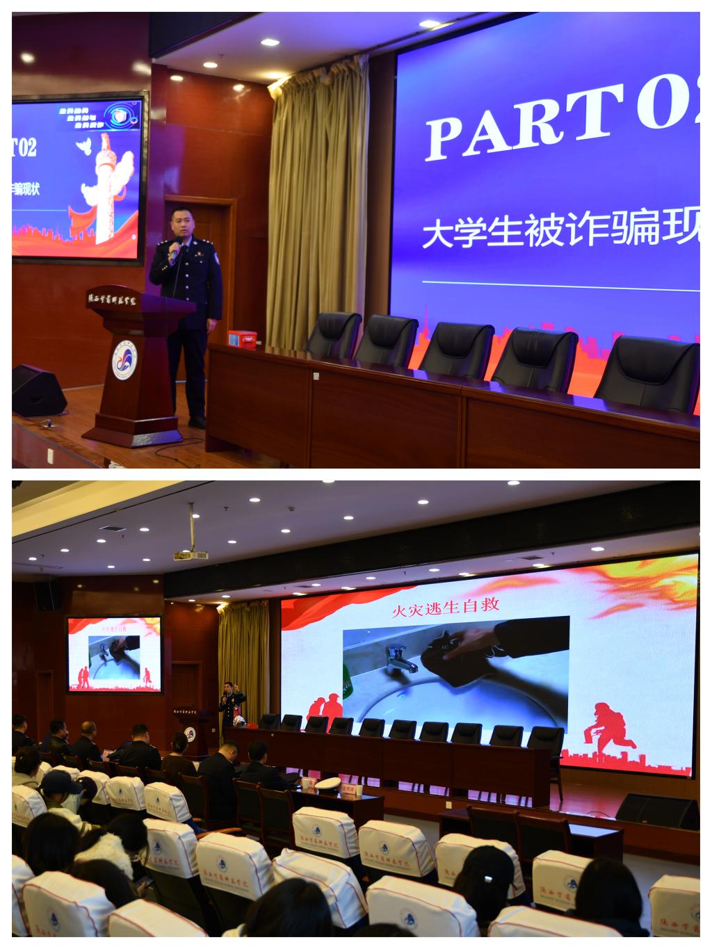 西安市公安局长安分局相关领导就辖区高校安全工作情况进行通报,明确表示,公安机关将持续深化警校协作,坚决守护校园安全,筑牢青春防线。民警高佳明和消防救援大队张辉涛同志分别围绕防范电信网络诈骗、识别毒品危害、消防安全知识等主题作了主题宣讲,并对学生疑问进行了耐心的解答。