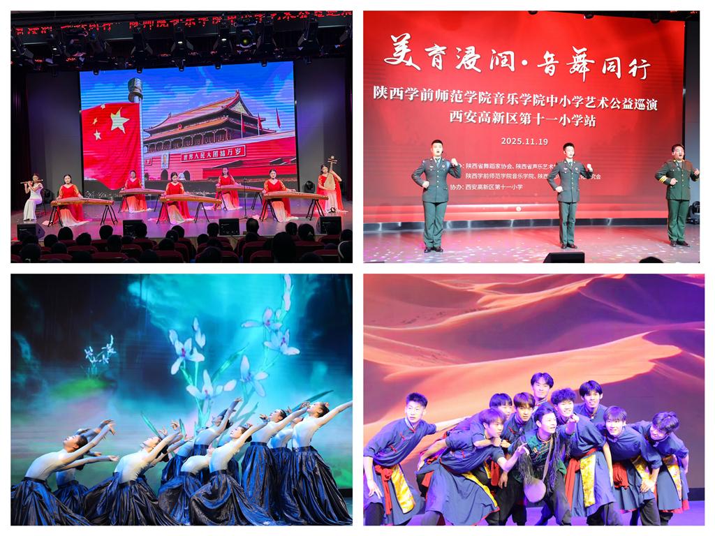 近日,由陕西省舞蹈家协会、陕西省声乐艺术协会、陕西省少年儿童文化研究会主办,beat365正版唯一官网承办的“美育浸润·音舞同行”中小学艺术公益巡演活动在西安高新区第十一小学举办。此次活动将高质量艺术表演与思政教育深度融合,打造了一场兼具审美与精神滋养的“行走的思政课堂”。