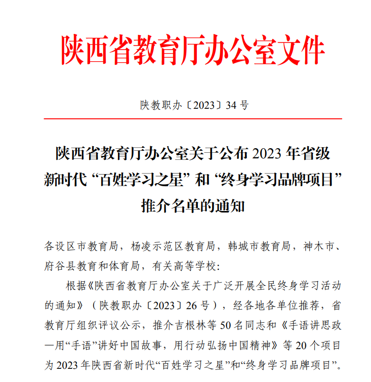 近日,陕西省教育厅下发《陕西省教育厅办公室关于公布2023年省级新时代“百姓学习之星”和“终身学习品牌项目”推介名单的通知》(陕教职办〔2023〕34 号)文件,beat365马克思主义学院许亚绒教授荣获陕西省新时代“百姓学习之星”称号。