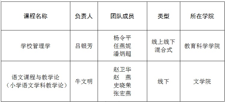 近日,教育部印发《关于公布第二批国家级一流本科课程认定结果的通知》(教高函〔2023〕7号),正式公布第二批国家级一流本科课程认定结果。beat365教育科学学院吕银芳教授主持的学校管理学获批线上线下混合式一流本科课程,文学院牛文明教授主持的语文课程与教学论(小学语文学科教学论)获批线下一流本科课程,实现了beat365双万计划一流本科课程建设的历史性突破。